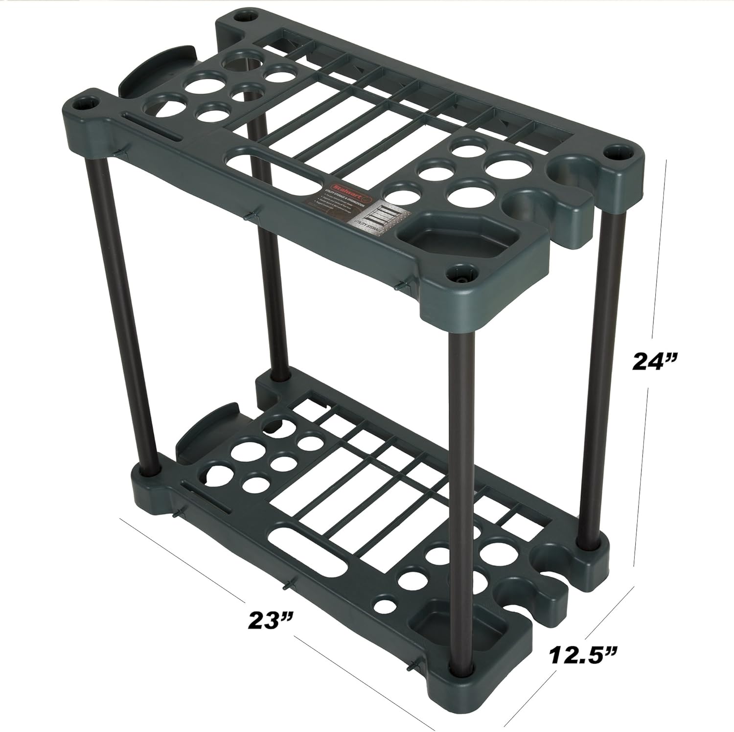 Garden Tool Organizer - 23-Inch Utility Rack Holds up to 30 Yard Tools to Maximize Floor Space - Garage Storage and Organizers by Stalwart (Green)