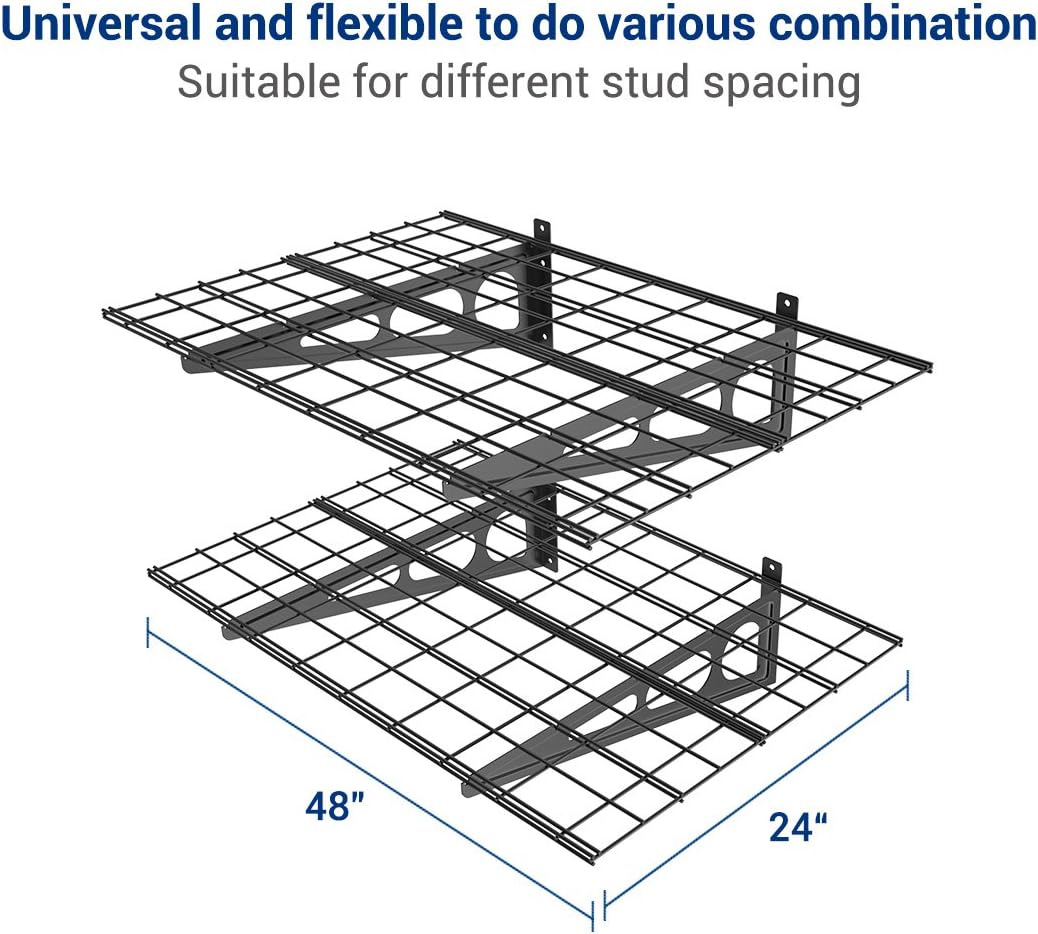FLEXIMOUNTS 2 Pack 2x4ft Garage Shelving, Wall Shelf Garage Storage Rack, 24-inch-by-48-inch, Black