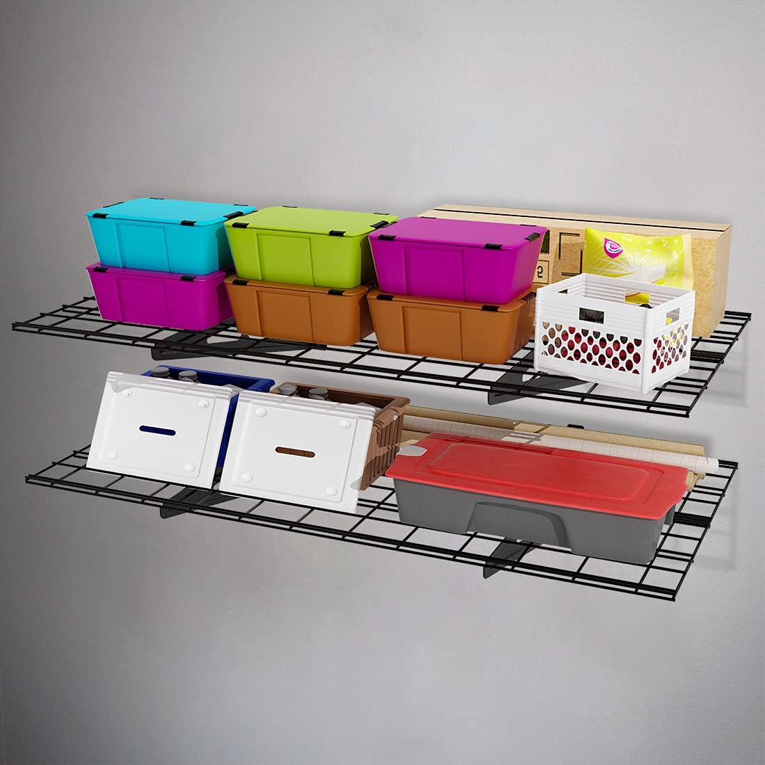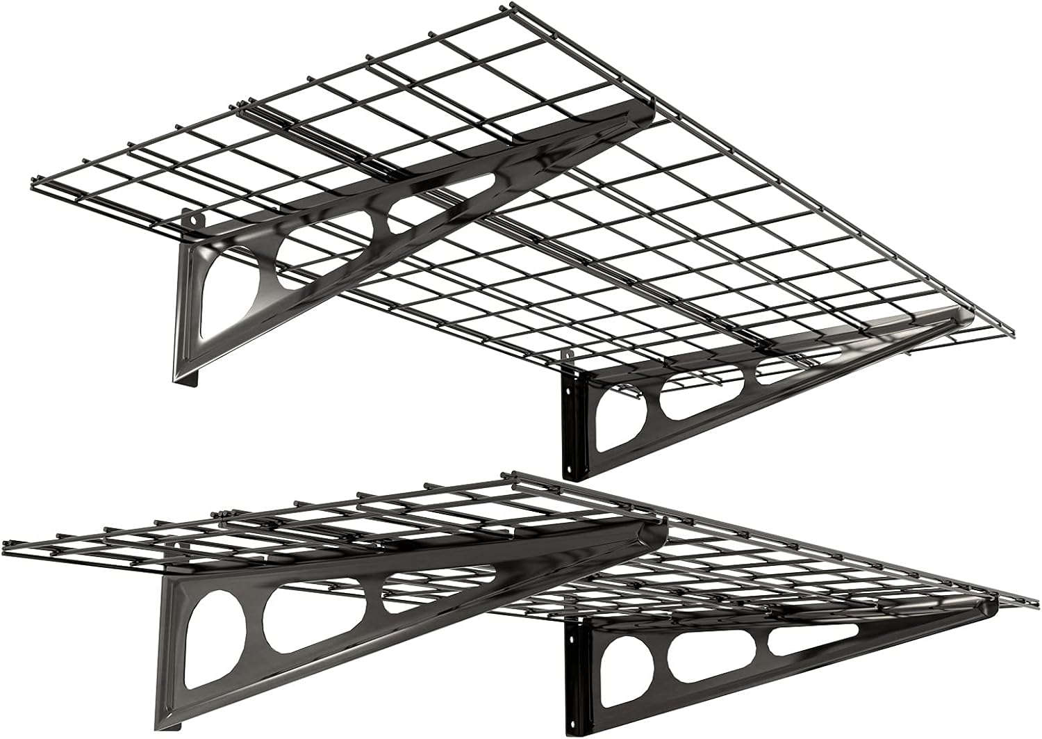 FLEXIMOUNTS 2-Pack 2x4ft 24-inch-by-48-inch Wall Shelf Garage Storage Rack Wall Mounted Floating Shelves, Black