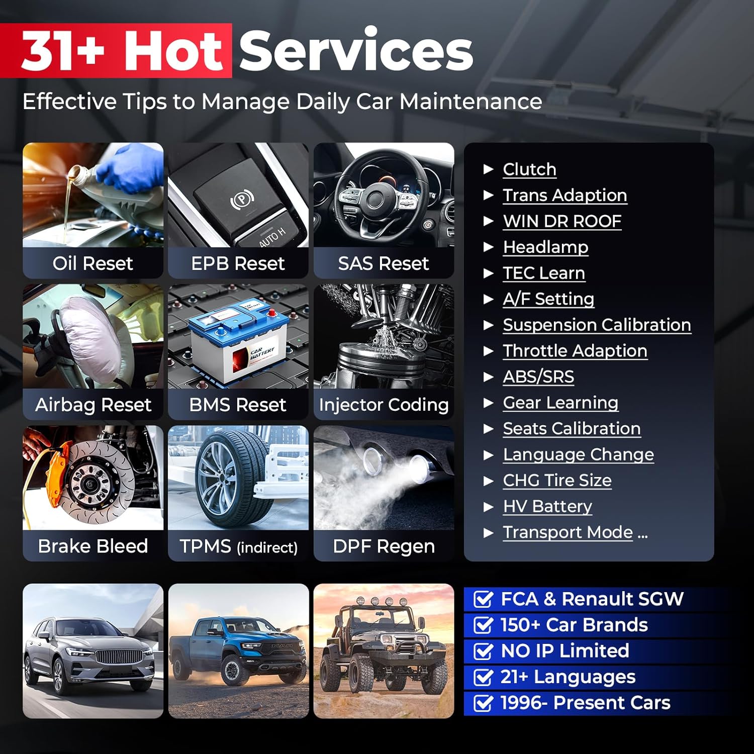 - 📢📢【2025 More 10+ Advanced Features】✅ Support FCA AutoAuth, works on 2018 & newer Chrysler, Dodge, Jeep, Alfa Romeo, Fiat vehicles directly for diagnostics, resets, active tests. ✅ Auto VIN & Auto Scan ✅ Among the comprehensive diagnostic tools globally, very few of them support All Guided Functions for VW/ Audi. Autel scanner MaxiPRO MP808S does.✅ Compatible with MV105S/MV108S endoscope ✅ Remote Desk ✅ Report to Cloud ✅ 21+ Languages Options, F-ree Authorization ✅ With data Manager and remote assistance capabilities✅Global Version, no IP restriction.