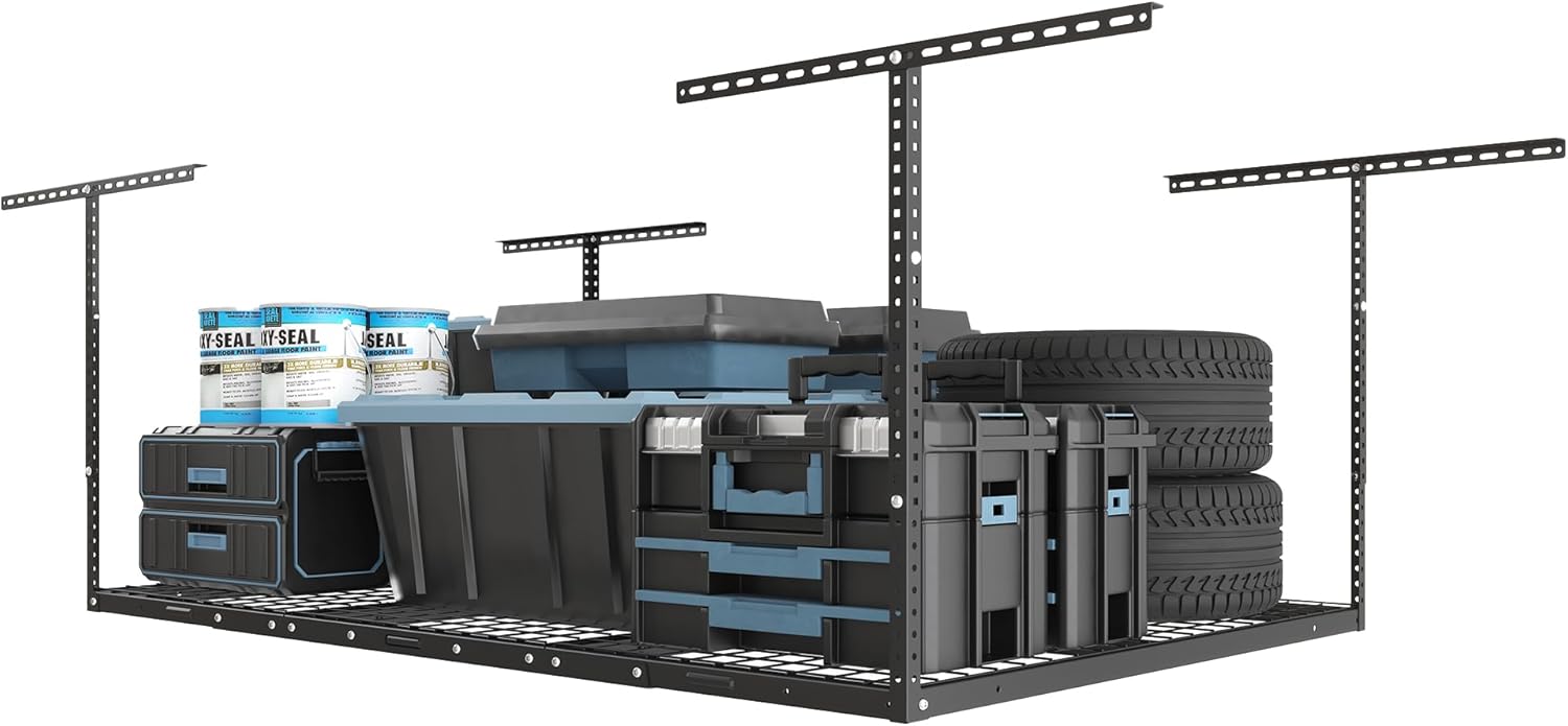 - Stability & Safety: With our specially designed longer ceiling brackets attaching to two joists and integrated grid design, FLEXIMOUNTS overhead garage storage racks are more stable and secure compared to others.