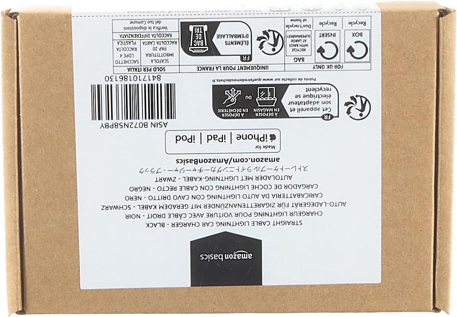 Amazon Basics 12W (5V, 2.4A) Car Charger with Lightning Cable (Straight) for iPhone and Apple Devices, 3 ft - Black