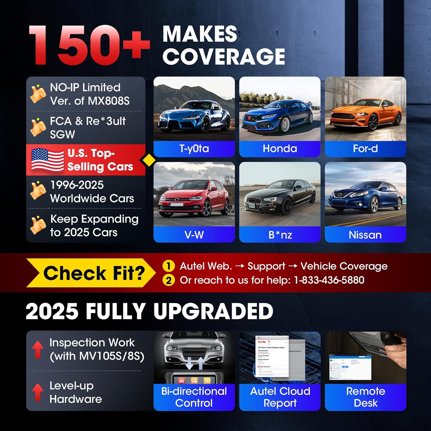 - ăFOR UPDATES AND COMPATIBILITY ISSUESăâ»ïžTo ensure optimal performance, always keep your MK808S updated via Settings > Firmware Upgrade. Your device includes one year of fr.ee software updates. After that, all offline features will continue to function without updates. đWith support for over 150 car brands (specific capabilities vary by model), you can verify compatibility by checking Autel Web.> Support> Vehicle Coverage or reaching to our support team at 1-833-436-5880. Weâre here to help!