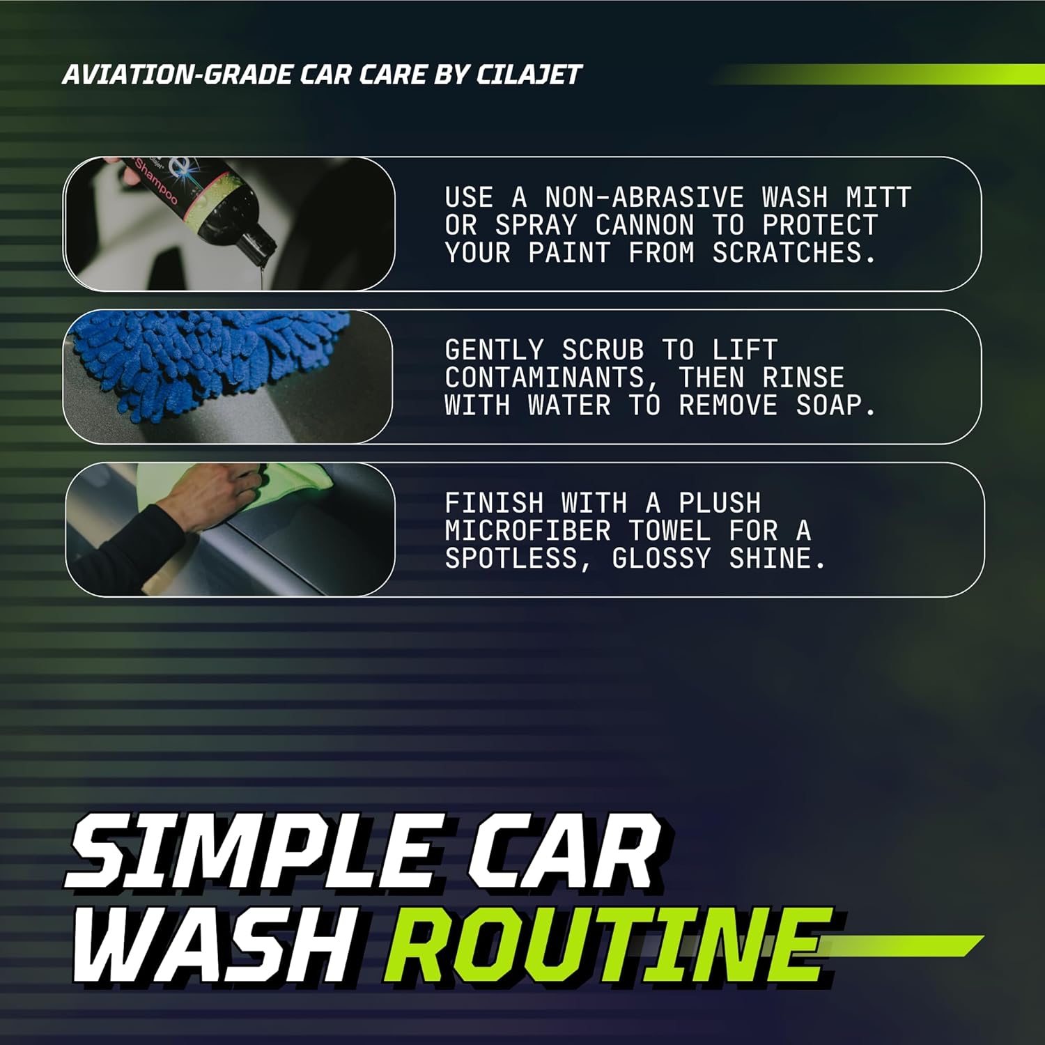 - NEXT LEVEL CLEAN: The first step in achieving showroom shine is a good wash. Our pH neutral Cilajet Care car wash soap and shampoo easily dissolves the toughest dirt, grime and buildup, delivering amazing suds and spot free shine