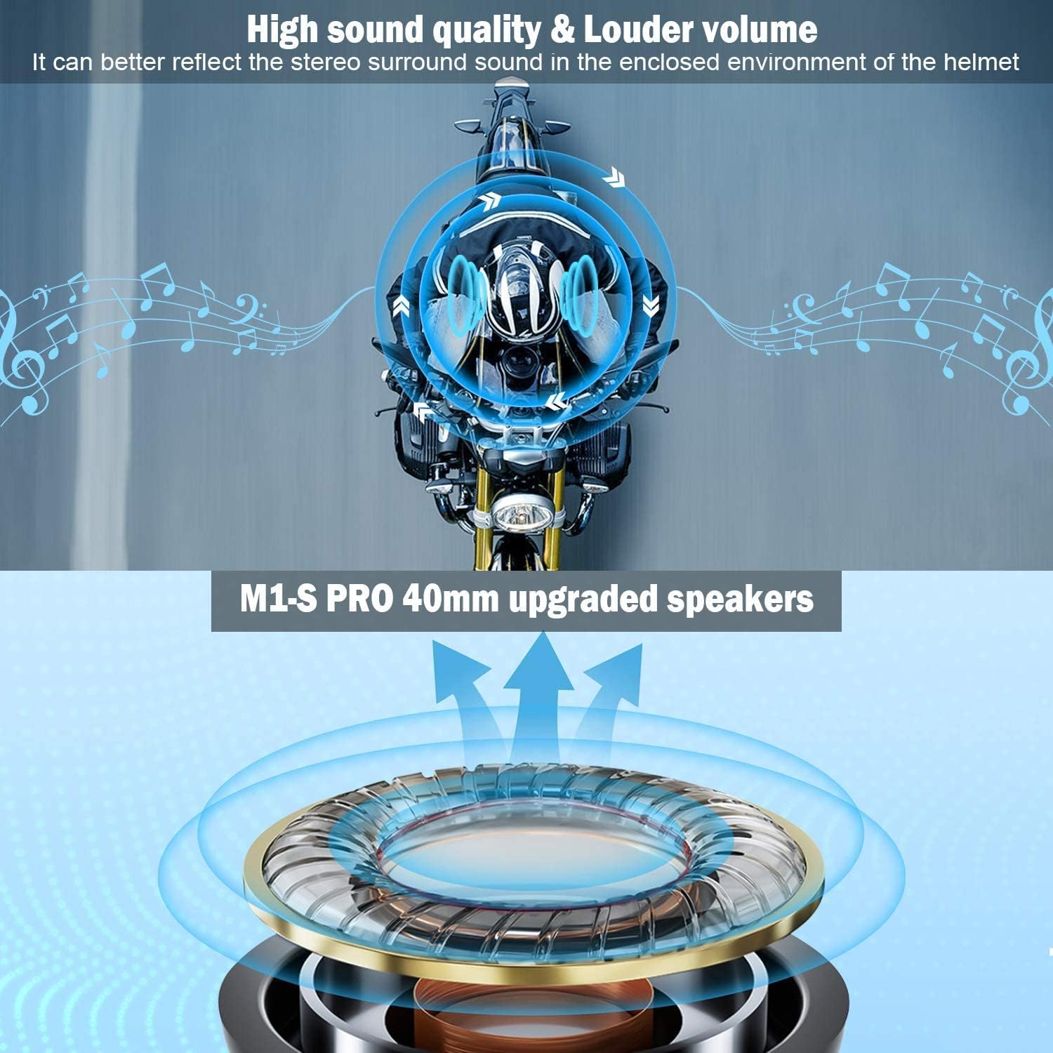 - 【Crystal-Clear Sound Quality & Handsfree】This helmet headset intercom uses high sound quality full-range membrane monomer. The M1-S Pro has high definition sound quality, especially for the bass has a high reproducibility. M1-S Pro has handsfree function, the factory setting defaults to manual answering, Switch manual/automatic answering calls: While in standby, press and hold the intercom button and volume “+ ”“- ”button at the same time for 3 seconds, you can set it to your liking.