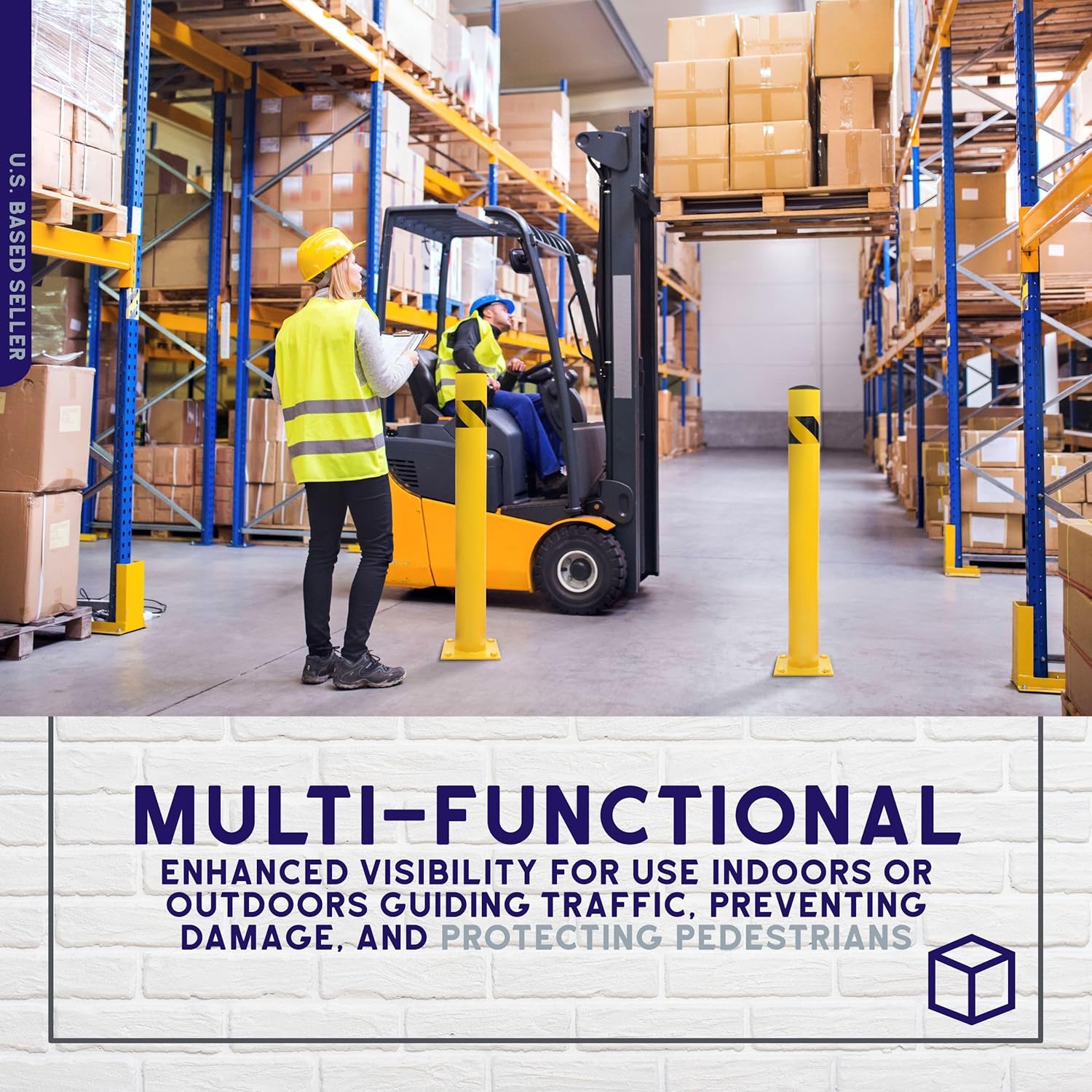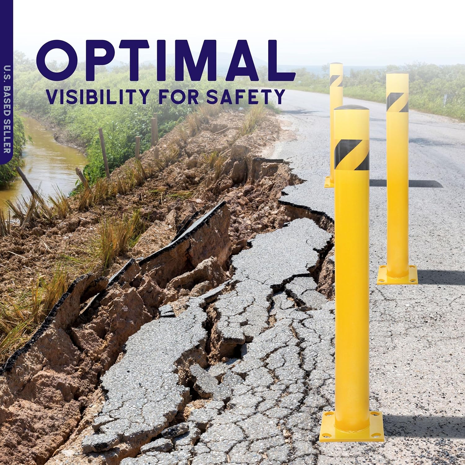 - [Enhanced Visibility]: Powder-coated bright yellow finish; Tops of our bollards are wrapped in 3in (7.6cm) black and yellow Department of Transportation compliant reflective tape for nighttime visibility
