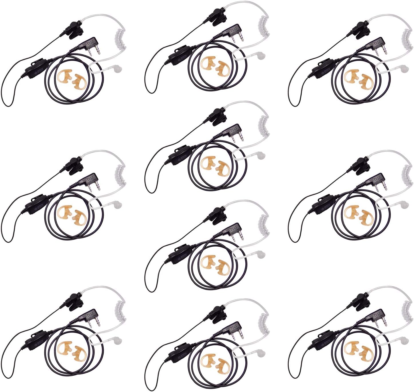 BTECH QHM07 Platinum Series Noise-Cancelling Earpiece with In-line PTT & Microphone for K1 Radios like BaoFeng, Kenwood Radios (Includes Earmolds and Earbud, 10 Pack)