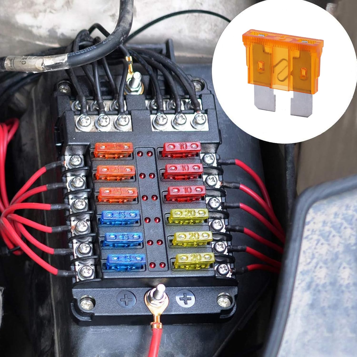 - WIDELY USE - These assorted fuses are specifically designed for Cars, Trucks, SUVs, ATVs, UTVs, Camper RV, Motorcycles, Fleet, Golf Car, Boat, snowmobiles, and most general DC applications etc., covering such components as radio, light, turn signals, etc.