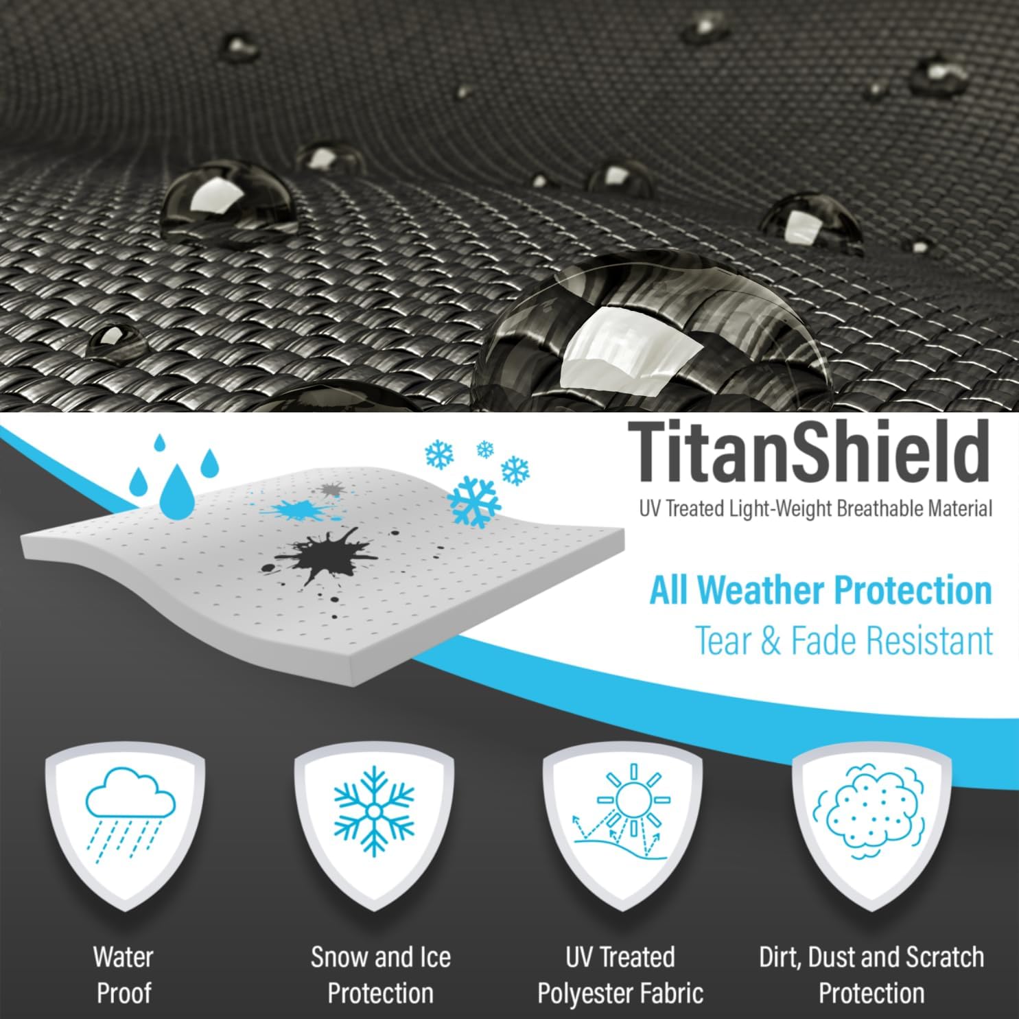 - All-Weather Protection: Durable UV treated, water resistant and breathable fabric with PU waterproof backing for excellent protection against sun, rain, snow, dirt and pollutants