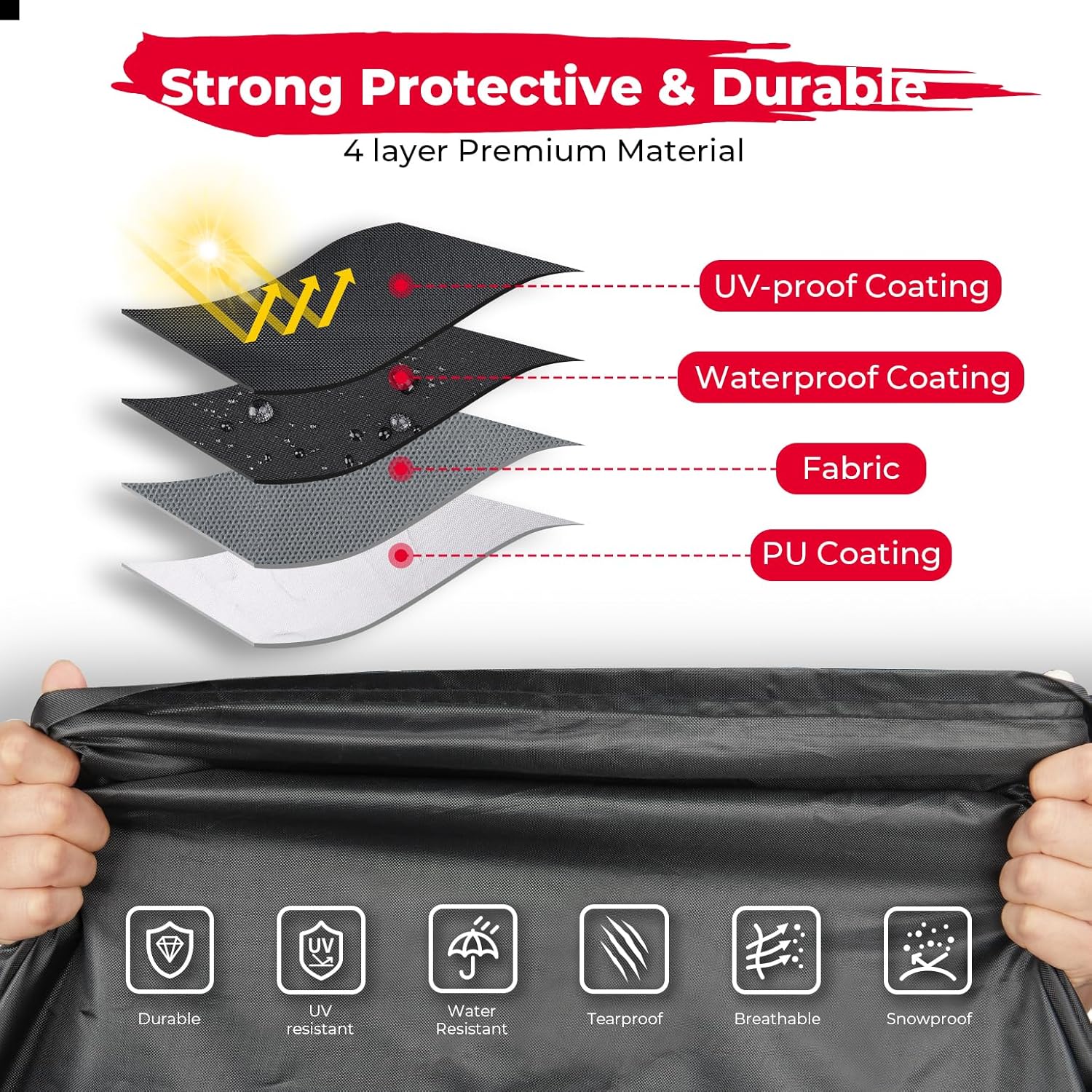 - Waterproof Oxford Cloth: Made from Oxford cloth with a waterproof PU and UV-resistant coating, our KEMIMOTO cover can withstand harsh conditions and prevent water seepage under 3000 Pa pressure. This keeps your SXS and rig protected from debris and weather damage, especially during the hot summer
