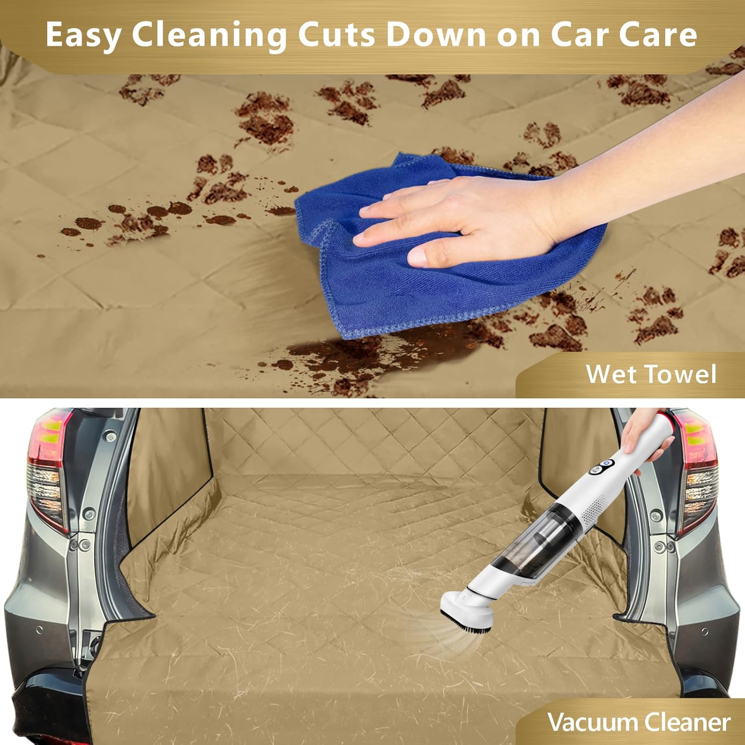 - Easy Clean-up - Made of 4-layers 600D oxford fabric; Our trunk cover for dog is Waterproof, stain-resistant and simple to clean; Wipe off dirt with a damp cloth or vacuum it
