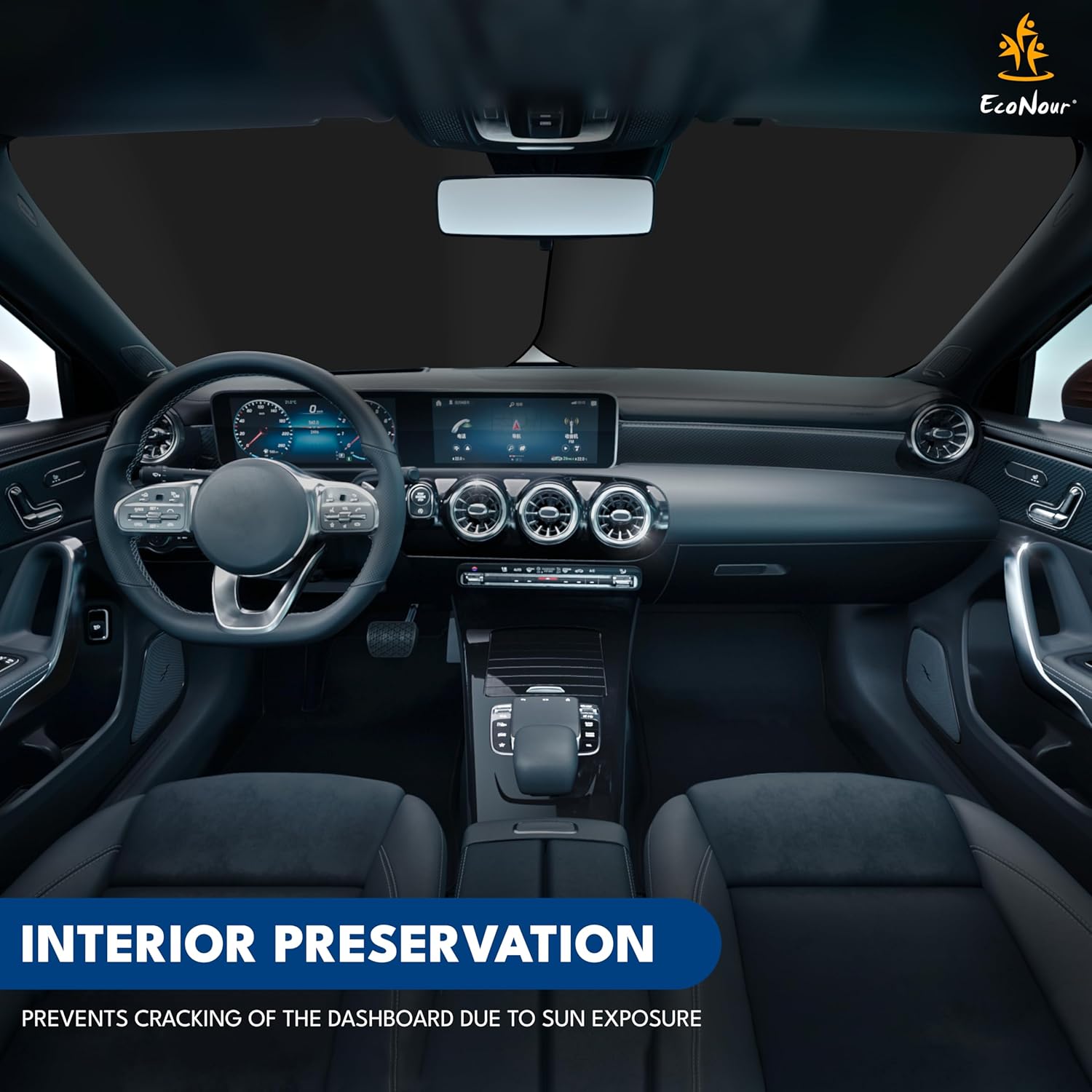 - Crafted for Excellence: Crafted from UV-reflective, reinforced 240T Polyester material and equipped with advanced heat reduction technology, EcoNour’s truck sun shield delivers unparalleled quality and durability. It effectively blocks out heat and UV rays, preserving your car's interior while keeping it comfortably cool.