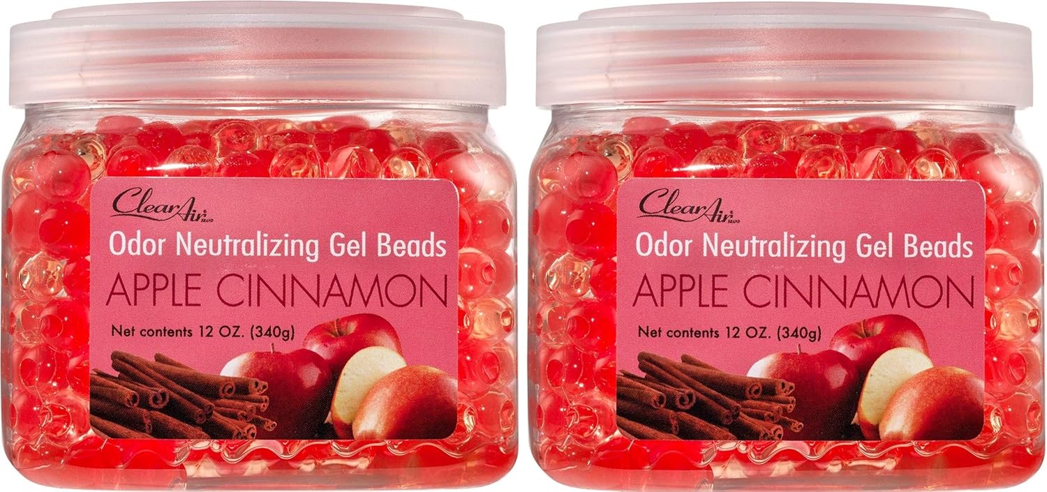 Clear Air Odor Eliminator Gel Beads - 12 oz, Pack of 2 - Air Freshener Made with Essential Oils - Eliminates Odors in Bathrooms, Cars, Boats, RVs & Pet Areas - Apple Cinnamon Scent