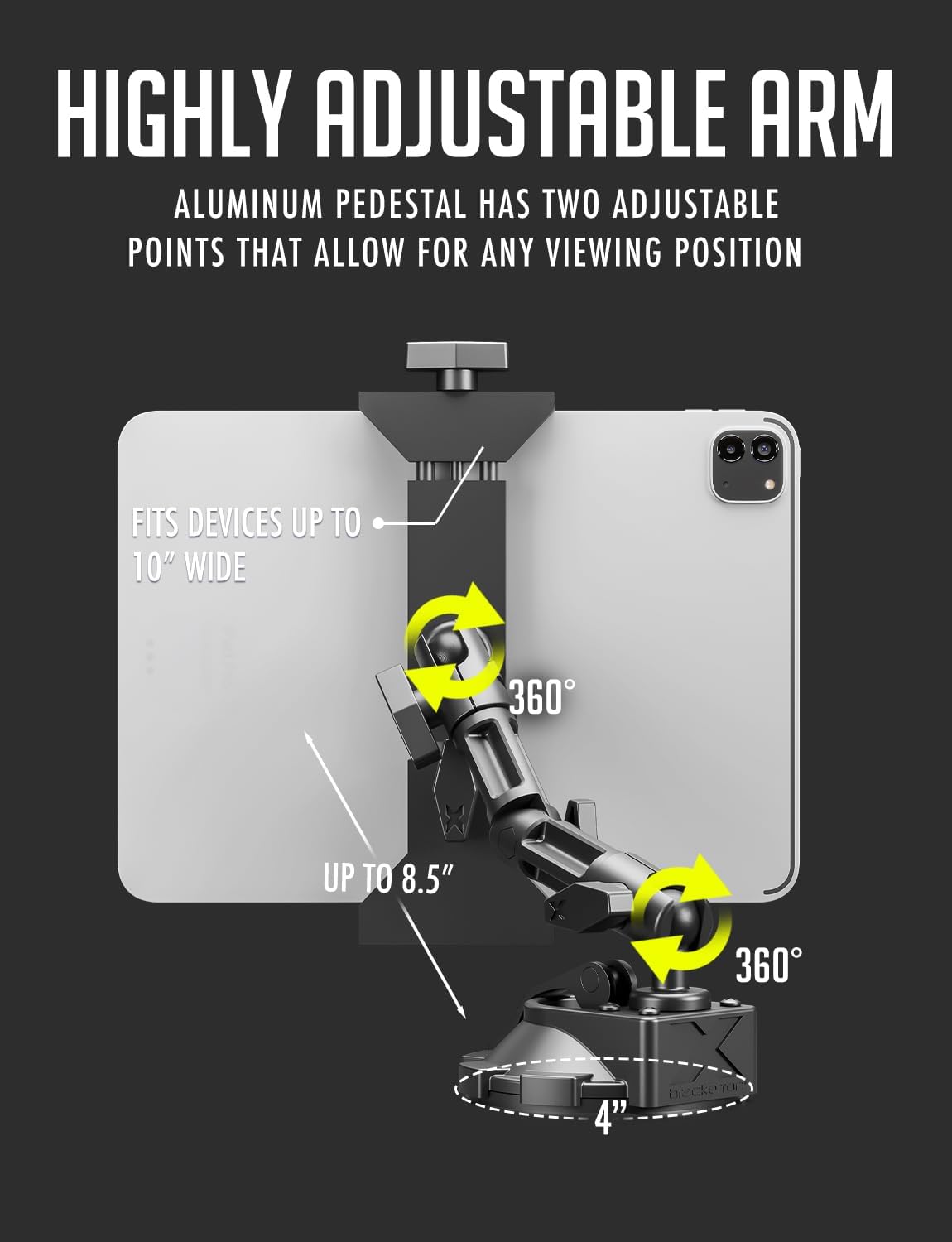 - TRUCK & CAR TABLET HOLDER: The Bracketron HD PRO line is designed for people who need heavy-duty accessories. This tablet car mount is made especially for professional drivers and fleets. It will withstand bumps and keep you compliant with traffic laws.