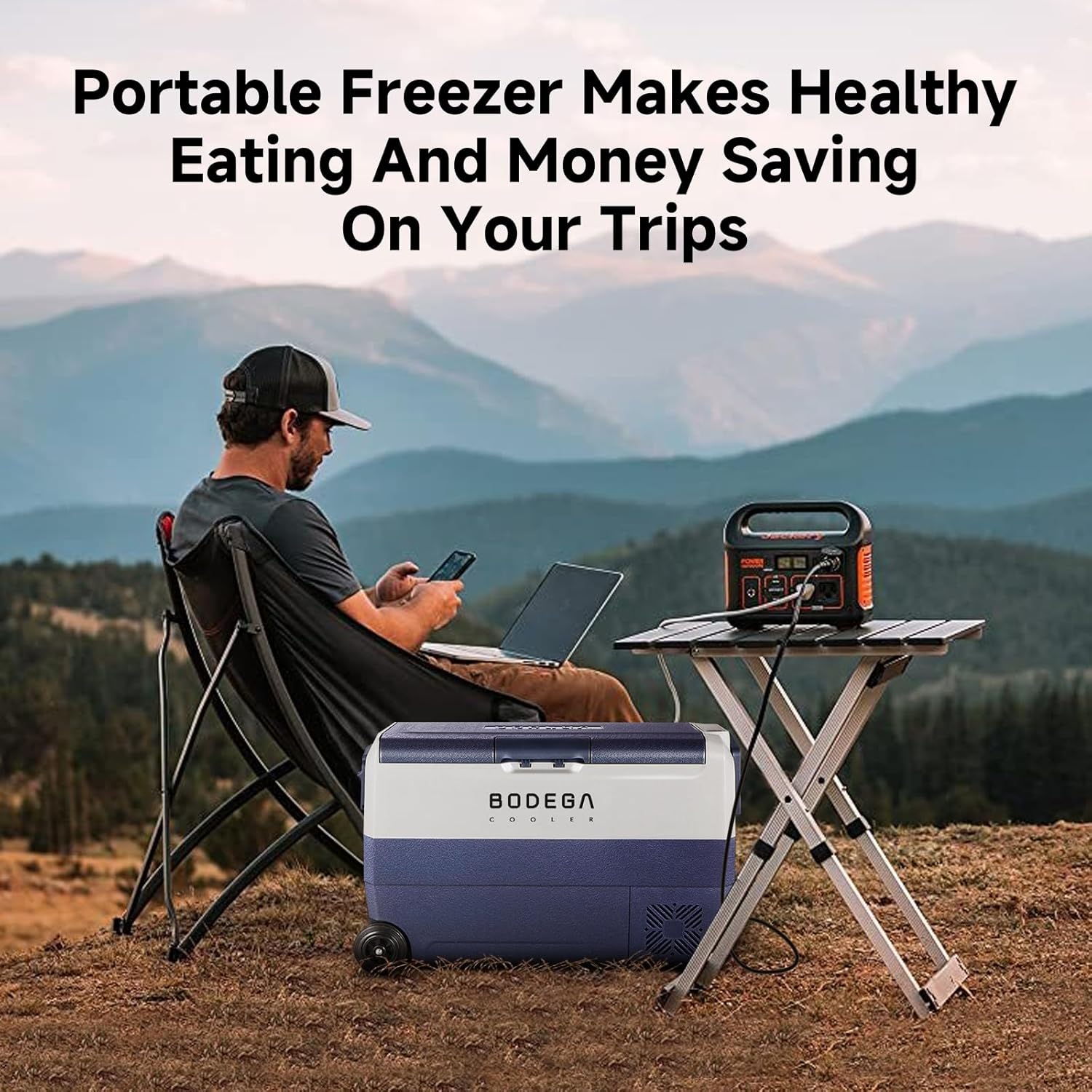 - EASILY USE: BODEGACOOLER portable refrigerator support App or manual control.Download the app (For android and ios) on the user manual and open the mobile bluetooth. Then plug the cord to start setting. Note: If you turn on the power manually, you need to press the power button for 3 seconds.refuse check the portable freezer again and again to feel cold.just set on phone and open to find fresh food.