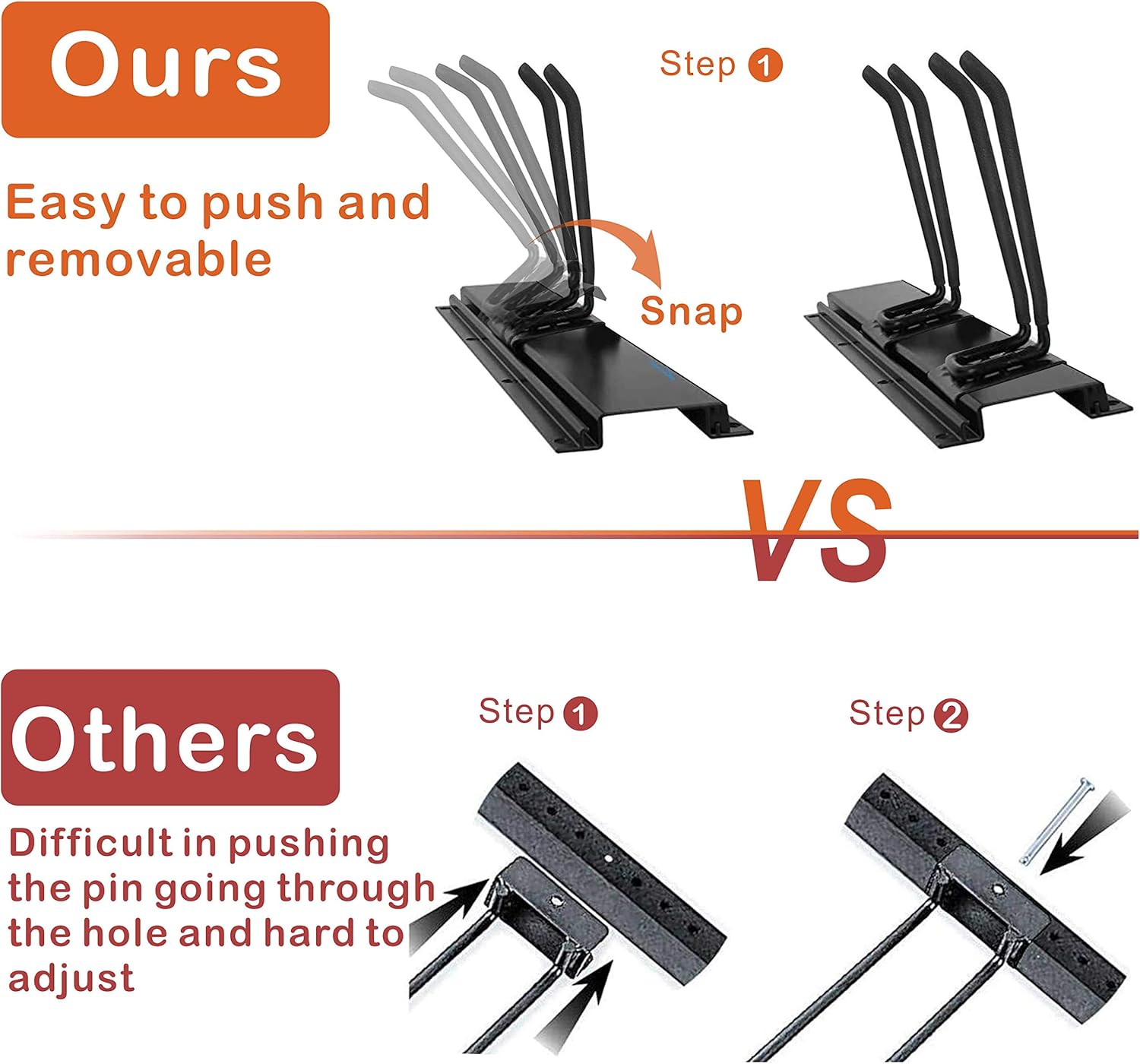 - 3 Pcs Heavy Duty Powder-Coated Steel Rails Boards: Different from others garage wall organizer, ours comes with 3 pcs rails boards. They are W / Epoxy Finish that won’t scratch, rust or chip over time. Each slide rail can put 2-3 hooks and will not appear too crowded.