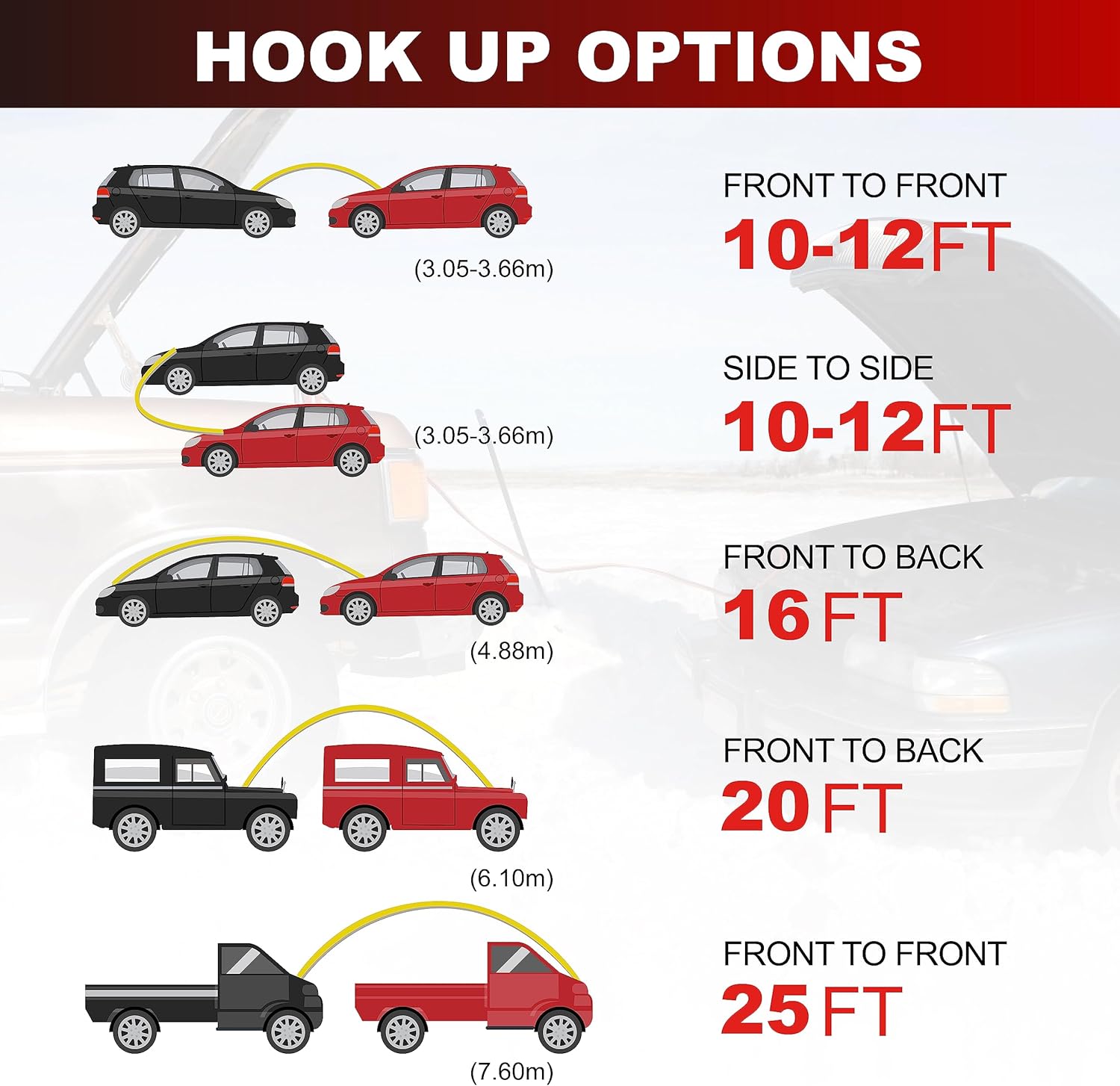 - Compatible Vehicles: 20 Feet length makes it easy to reach from one car battery to another. Unique Design clamps suitable for various cars and connection ways.