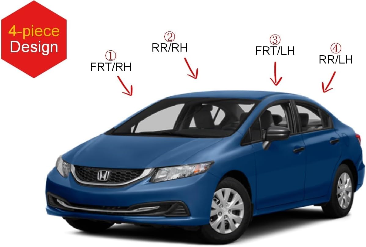 AUTOCLOVER Tape-On Rain Guards Window Visors 4 Pcs Set for Honda Civic Sedan 4dr 2012 2013 2014 2015 / Window Deflectors, Out-Channel Vent Shades (Smoked)