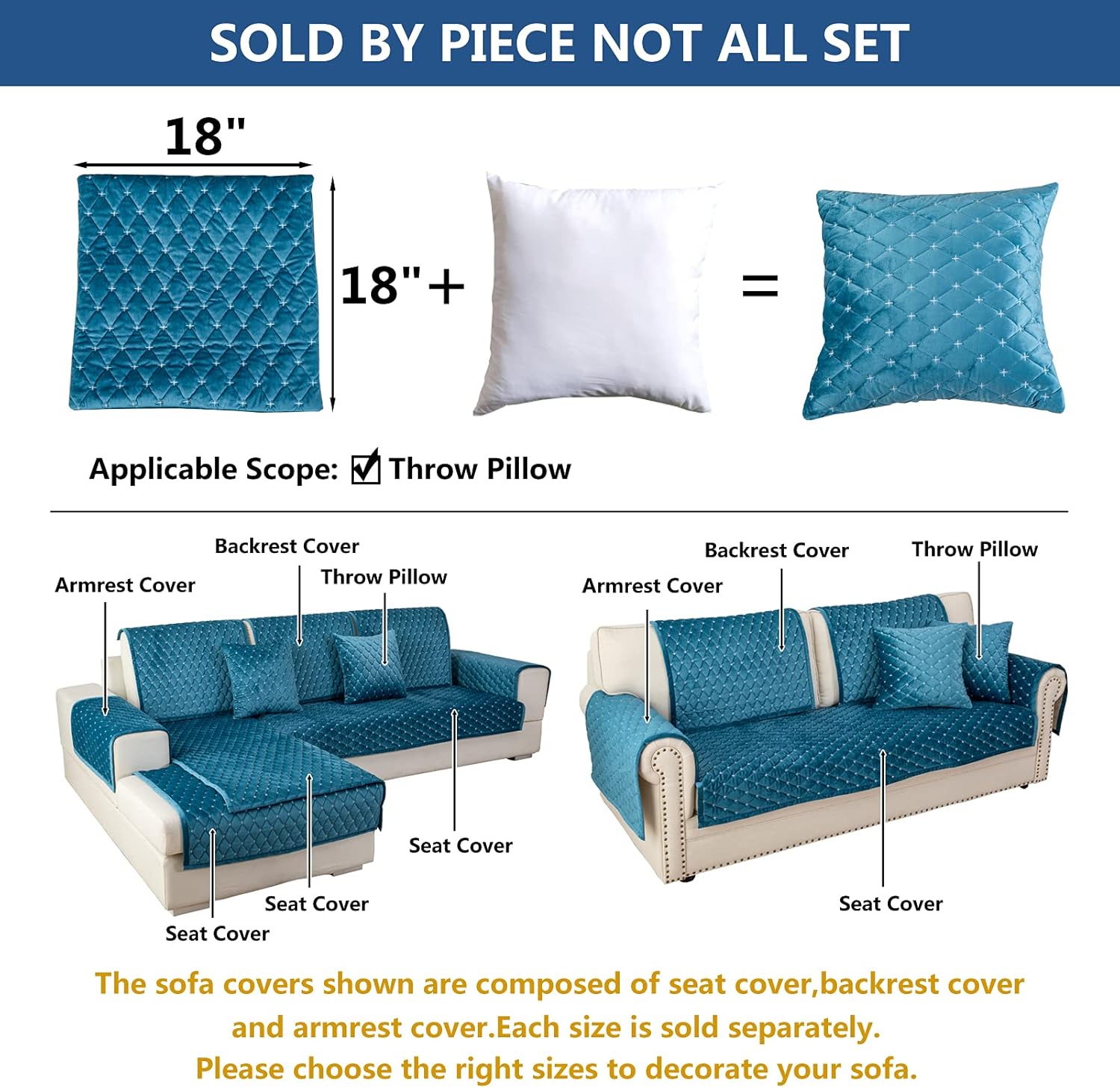 Eismodra Throw Pillows,Couch Cover,Sofa Cover,Sectional Couch Covers for 3 Cushion Couch,Sofa Slipcovers for Dogs Cats Pet Loveseat Recliner Leather L Shaped,Blue 18 x 18 Inches (Only 1 Piece)