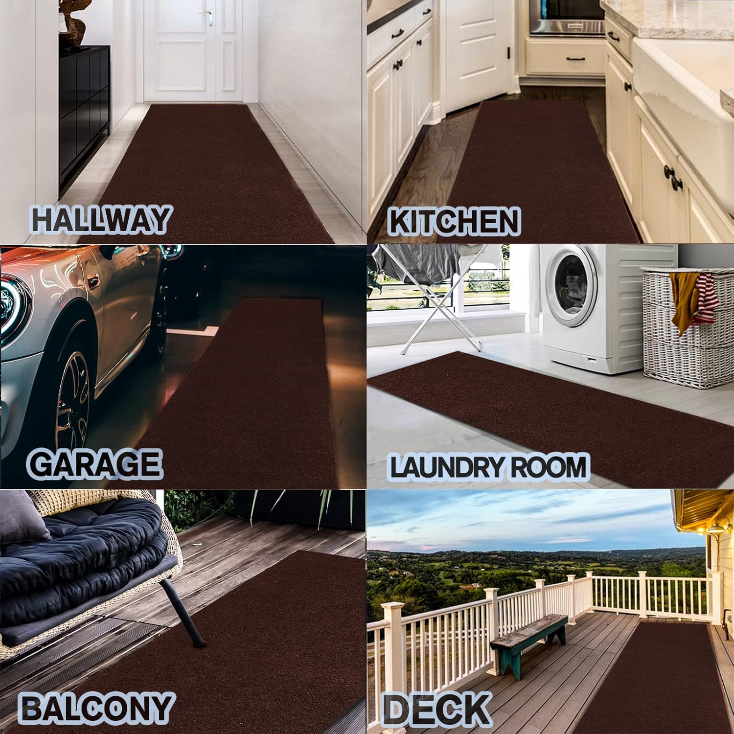 Custom Size Backed Non-Slip Area Rugs Runner, Easy Clean, Waterproof Runner Rugs for Hallway Entryway, Kitchen, Laundry, 4FT x 32FT, Brown