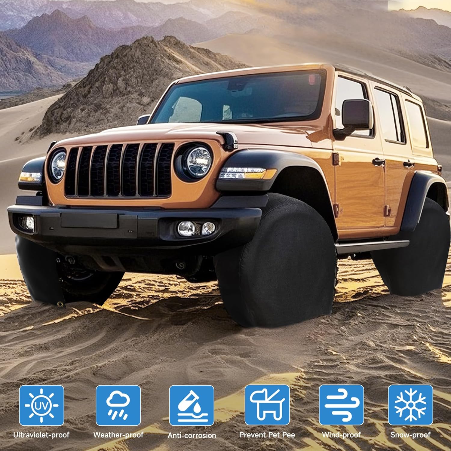 - 【Windproof Tire Covers 】Elasticized back hem and hook design for a secure fit. The cord keeps the tire cover stay on the wheel even on windy days. Easy to install and remove.