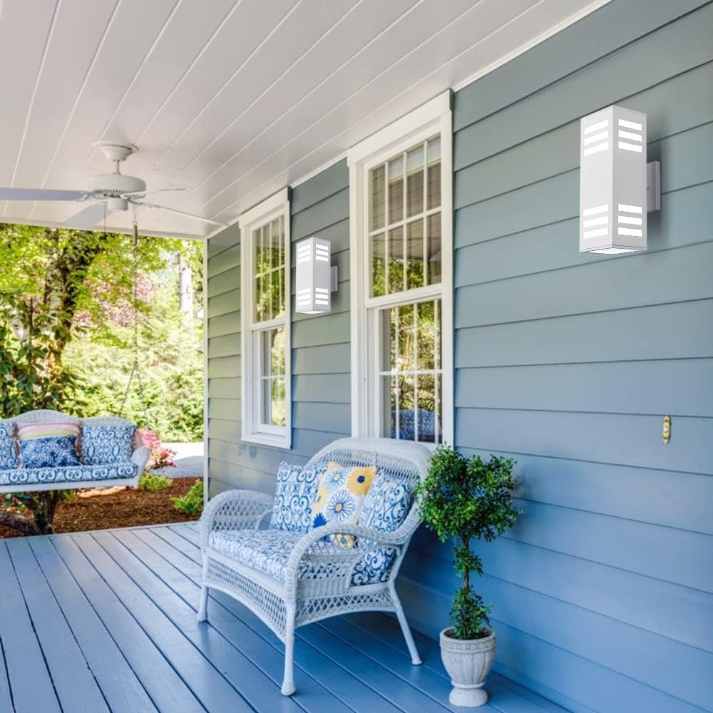 harriet Porch Lights Outdoor Modern - IP64 Waterproof Aluminum and Tempered Glass Cover, 13" Rectangular Up/Down Wall Sconce for Porch, Garage & Patio, Exterior Lighting, White