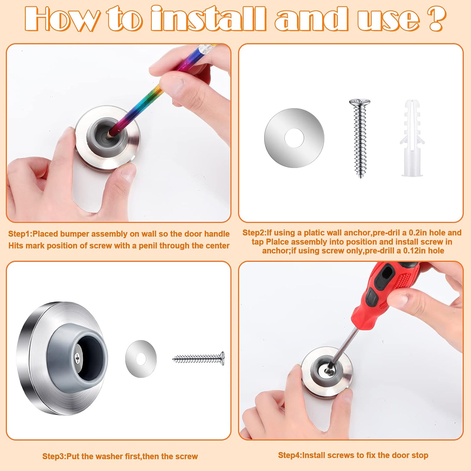 - Easy to install: the package contains a total of 12 pieces of necessary parts and screws needed for door stops' installation, allowing you to install quickly and easily