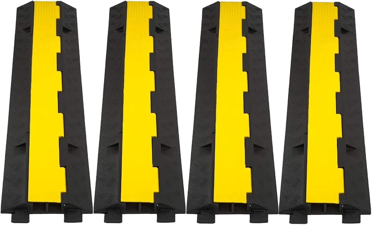 CXRCY Cable Ramp 4 Pack 2 Channel 11000lbs axle Capacity Floor Cable Cord Protector, Black & Yellow Speed Bumps Hose Protector Ramps for Wire/Hose/Pipe Hider Driveway &Outdoor 40x10x2 inch(L x W x H)