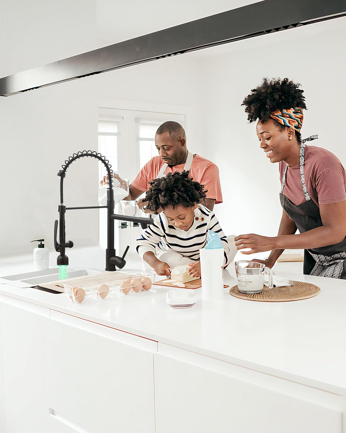 - Three-color Led Light Design: LED Kitchen Faucet has mini built-in generating electricity devices, no need for batteries, as long as the water flows it will give out light, turn off the water, and the light goes out immediately. The color of LED lights changes automatically via water temperature. Protect your family from cold water and hot water, especially elderly people and children.