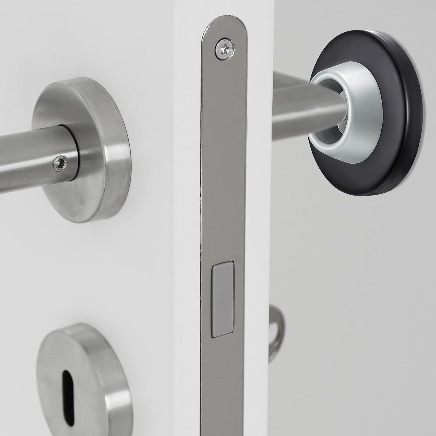 - Protect your walls: stop worrying about making holes in your walls from door knobs with a stainless steel and rubber wall stop; This simple solution protects your walls from round and long door handles