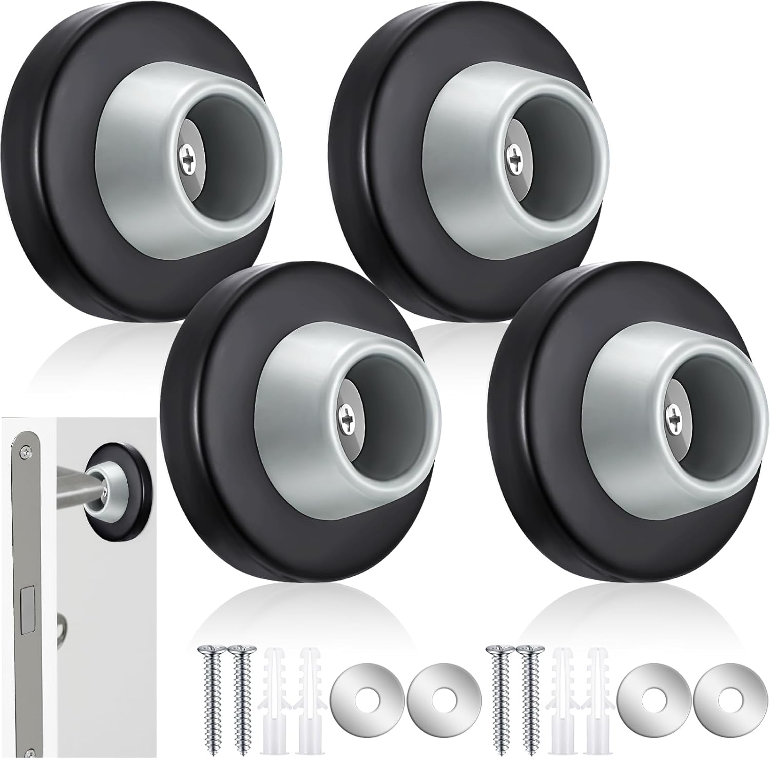 Blulu Concave Wall Door Stopper Door Bumper Stainless Steel Wall Protector Flush Bumper with Grey Rubber Concave Knob Cover Stopper(Black,4 Pieces)