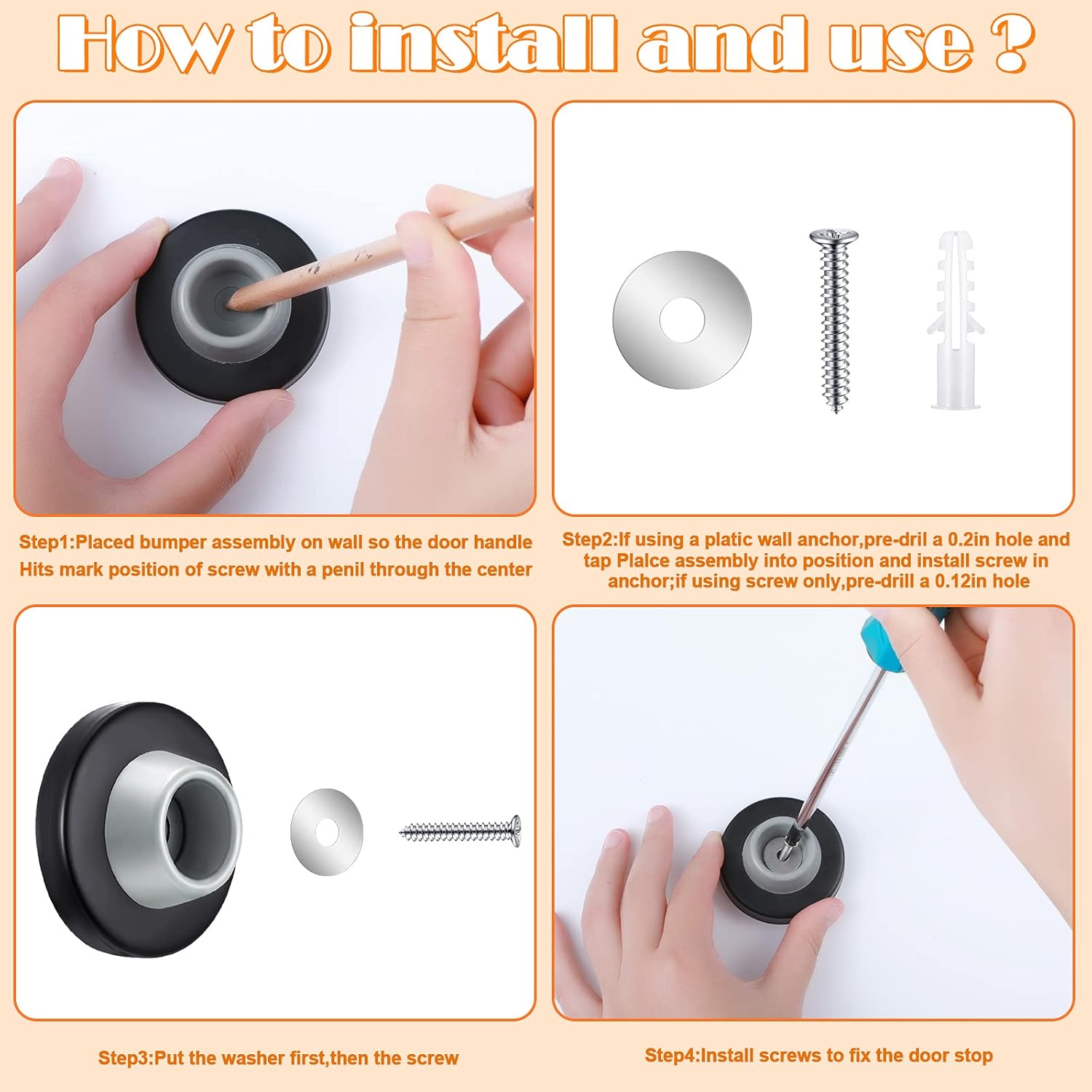 - Easy to install: the package contains a total of 12 pieces of necessary parts and screws needed for door stops' installation, allowing you to install quickly and easily