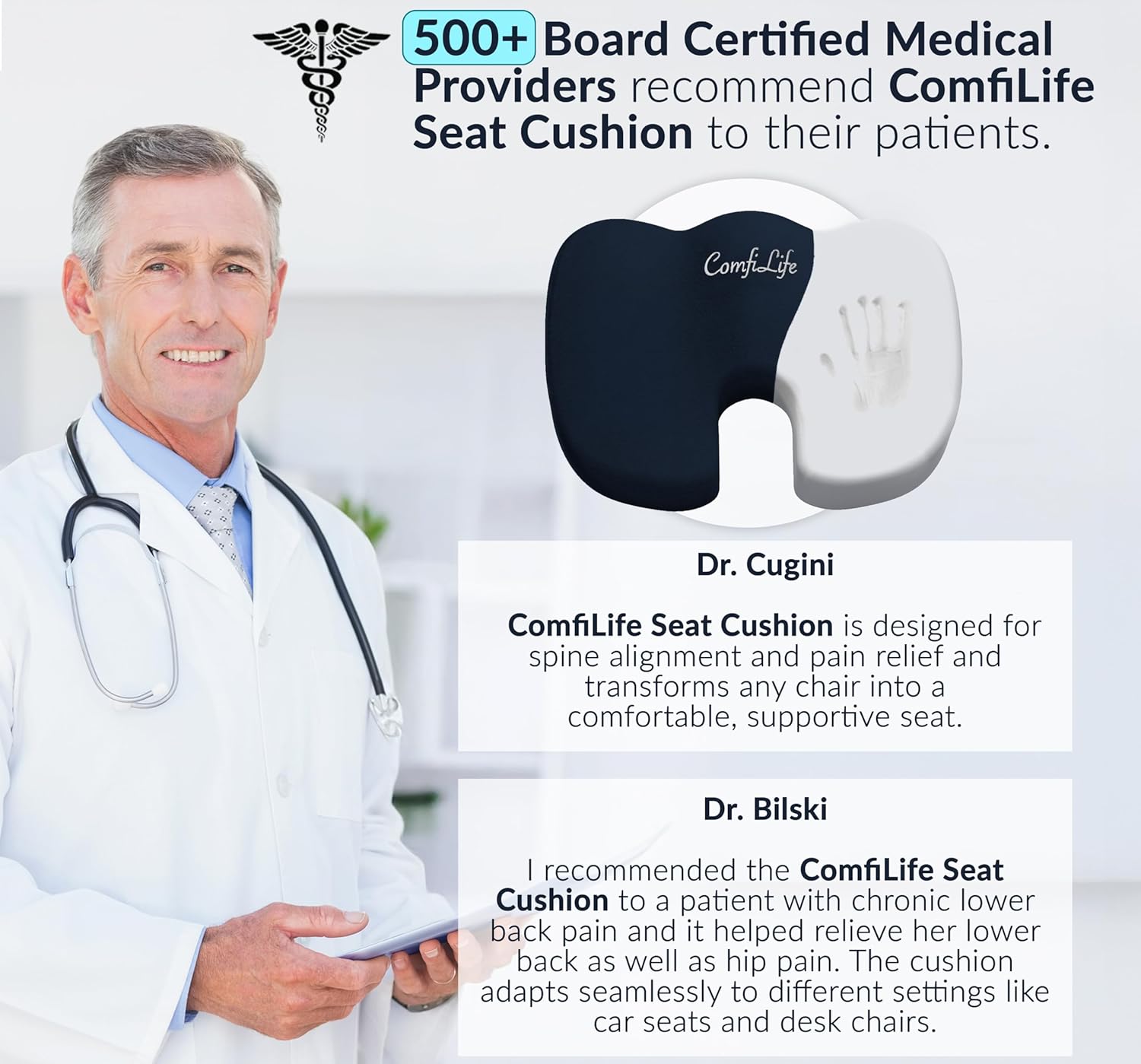 ComfiLife Premium Seat Cushion – 100% Memory Foam Office Chair Cushion, Back Relief (Navy)