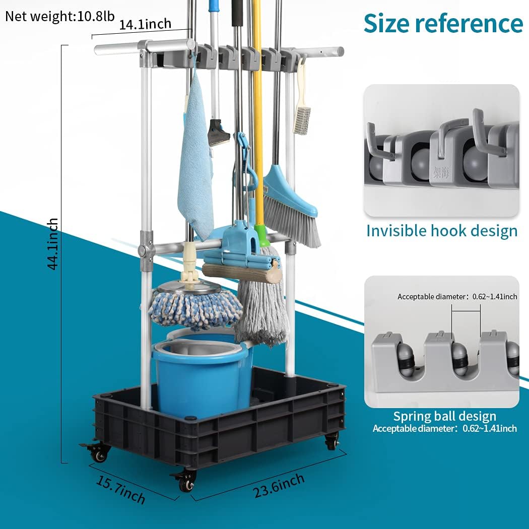 Broom And Mop Holder Put Wet Mops Movable Floor-Mounted Mop Rack Floor Standing Cleaning Tool Cart Storage For Garden Garage Schools, Hospitals, Factories, Hotels,Property Companies (12racks)