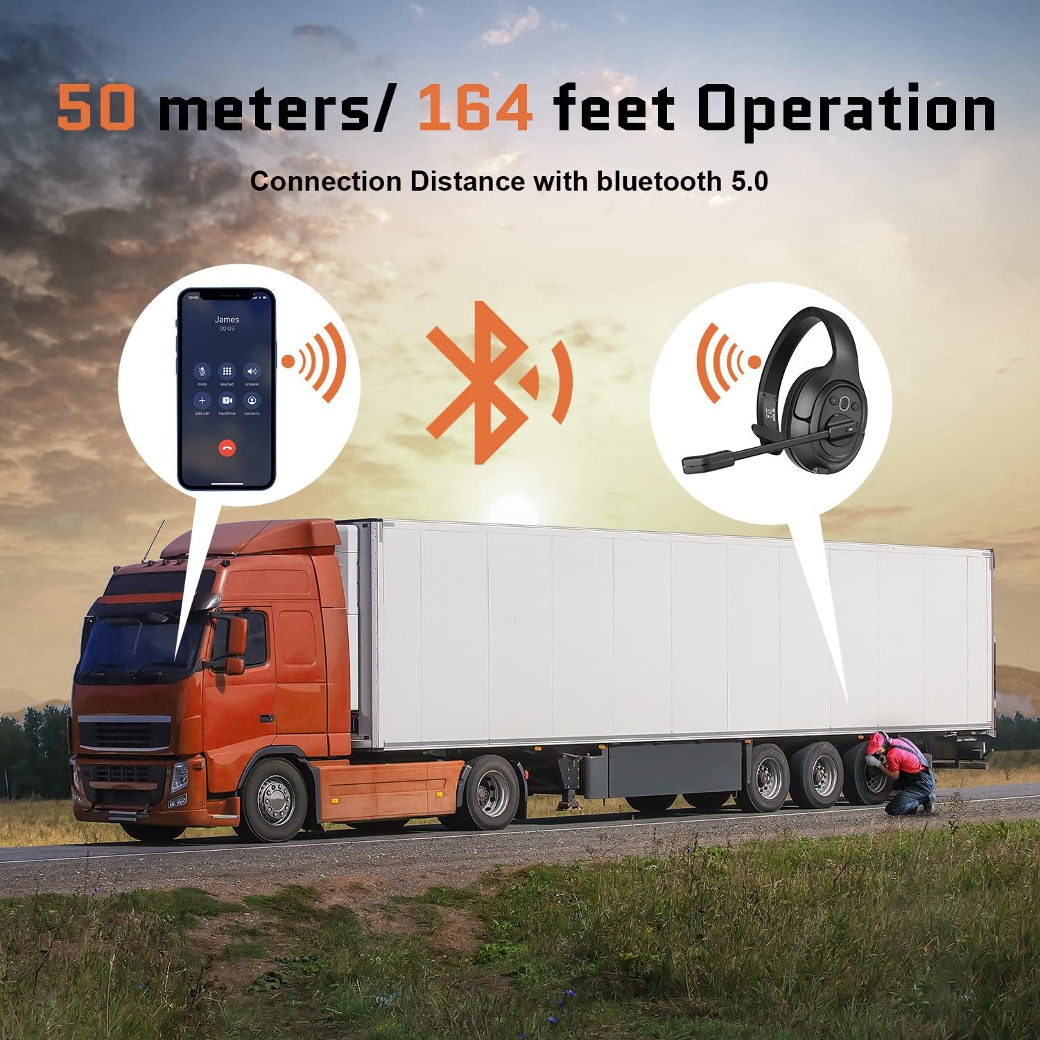 - 【World-Class Environmental Noise Cancelling Headset】 With the wireless headphones with microphone, you can make calls anywhere. The trucker bluetooth headset comes with a unique adaptive environmental noise-canceling chipset technology that monitors background noise and instantly produces an opposite signal, eliminating up to 99.6% unwanted disruptive noise.