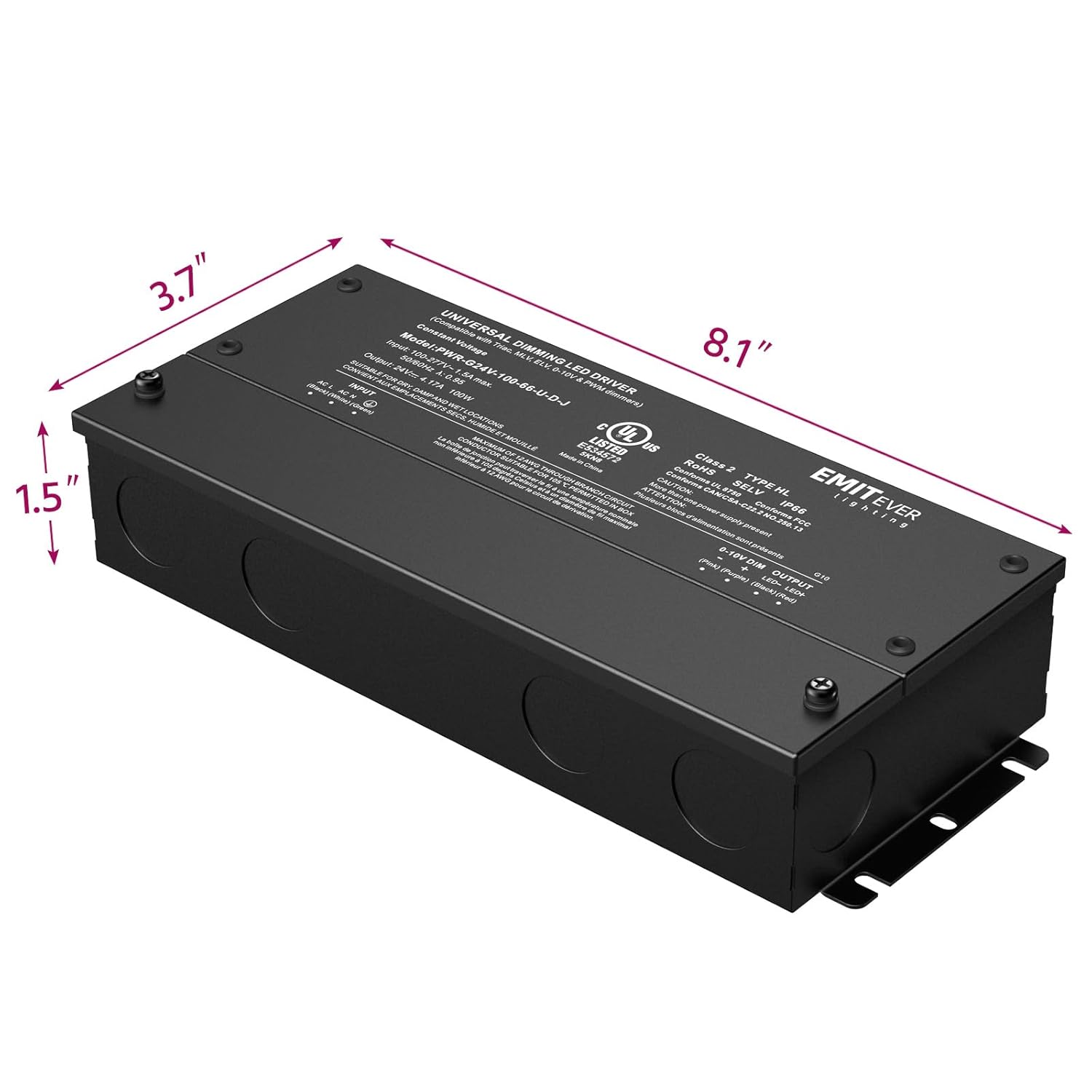 EMITEVER Dimmable Led Driver, 100W AC 100V-277V to DC 24V Transformer, 5-in-1 Dimming: ELV/MLV/TRIAC / 0-10V / 1-10V / 10V PWM/Potentiometer, Waterproof IP67 and UL Listed