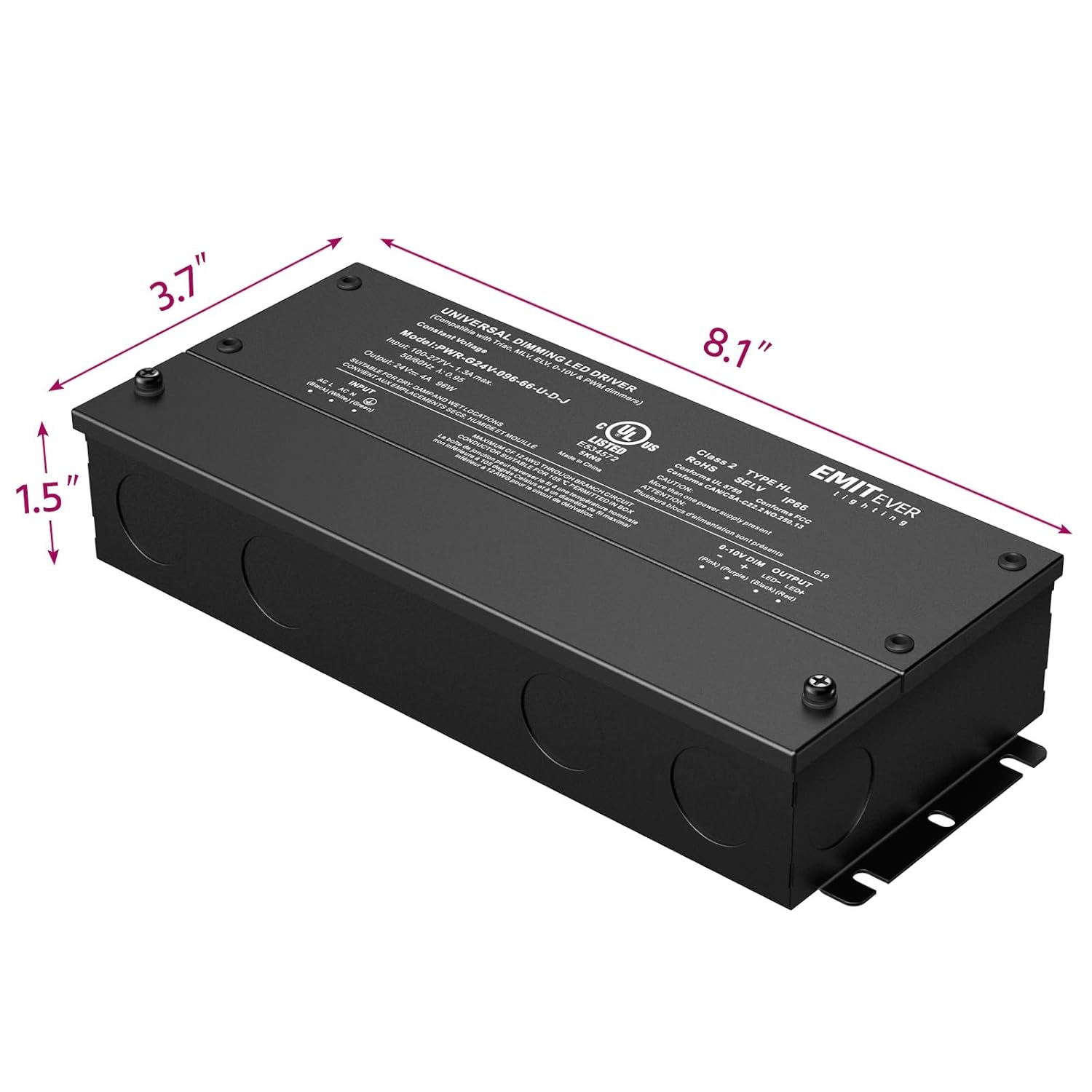 EMITEVER 96W Dimmable LED Driver,24V Dimmable Power Supply,AC to DC Transformer for LED Light,5-in-1 Dimming: ELV/MLV/TRIAC/ 0-10V/ 1-10V/10V PWM/Potentiometer,Waterproof IP67 and UL Listed,Class 2