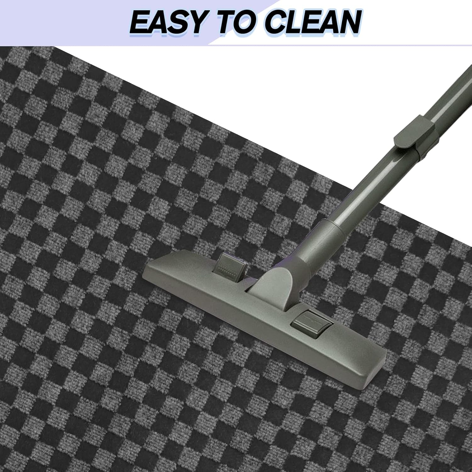 Custom Size Backed Non-Slip Area Rugs Runner, Easy Clean, Waterproof Runner Rugs for Hallway Entryway, Kitchen, Laundry, 4FT x 62FT, Gray Checkered