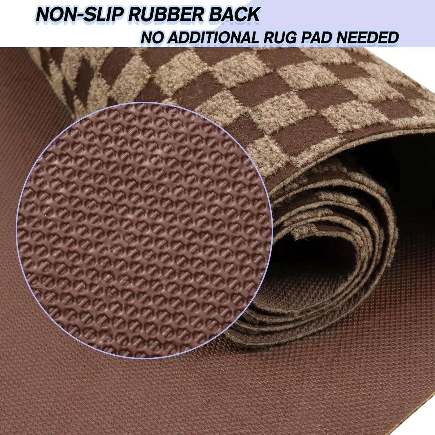 Custom Size Backed Non-Slip Area Rugs Runner, Easy Clean, Waterproof Runner Rugs for Hallway Entryway, Kitchen, Laundry, 2FT x 9FT, Brown Checkered