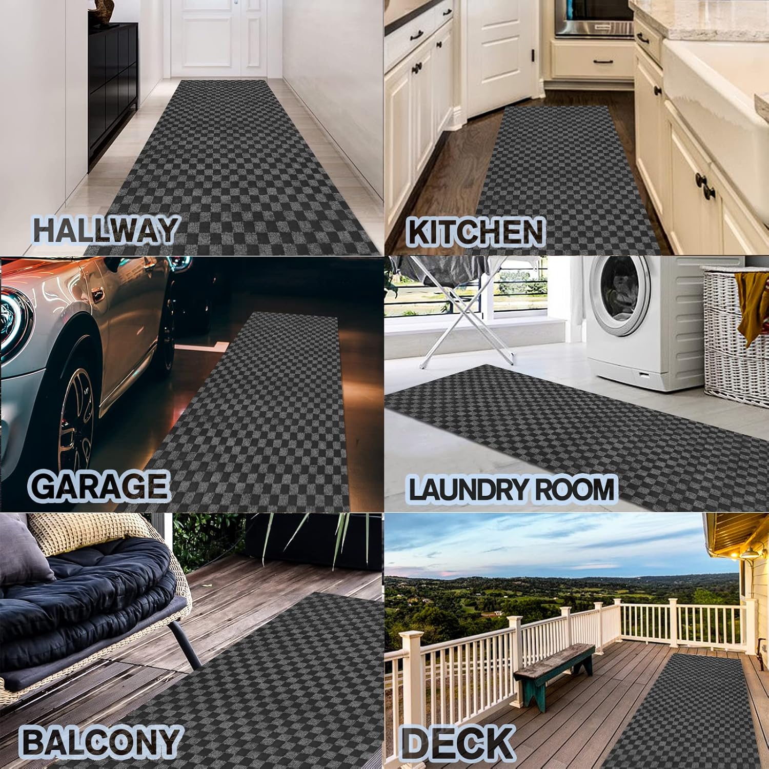 Custom Size Backed Non-Slip Area Rugs Runner, Easy Clean, Waterproof Runner Rugs for Hallway Entryway, Kitchen, Laundry, 2FT x 27FT, Gray Checkered