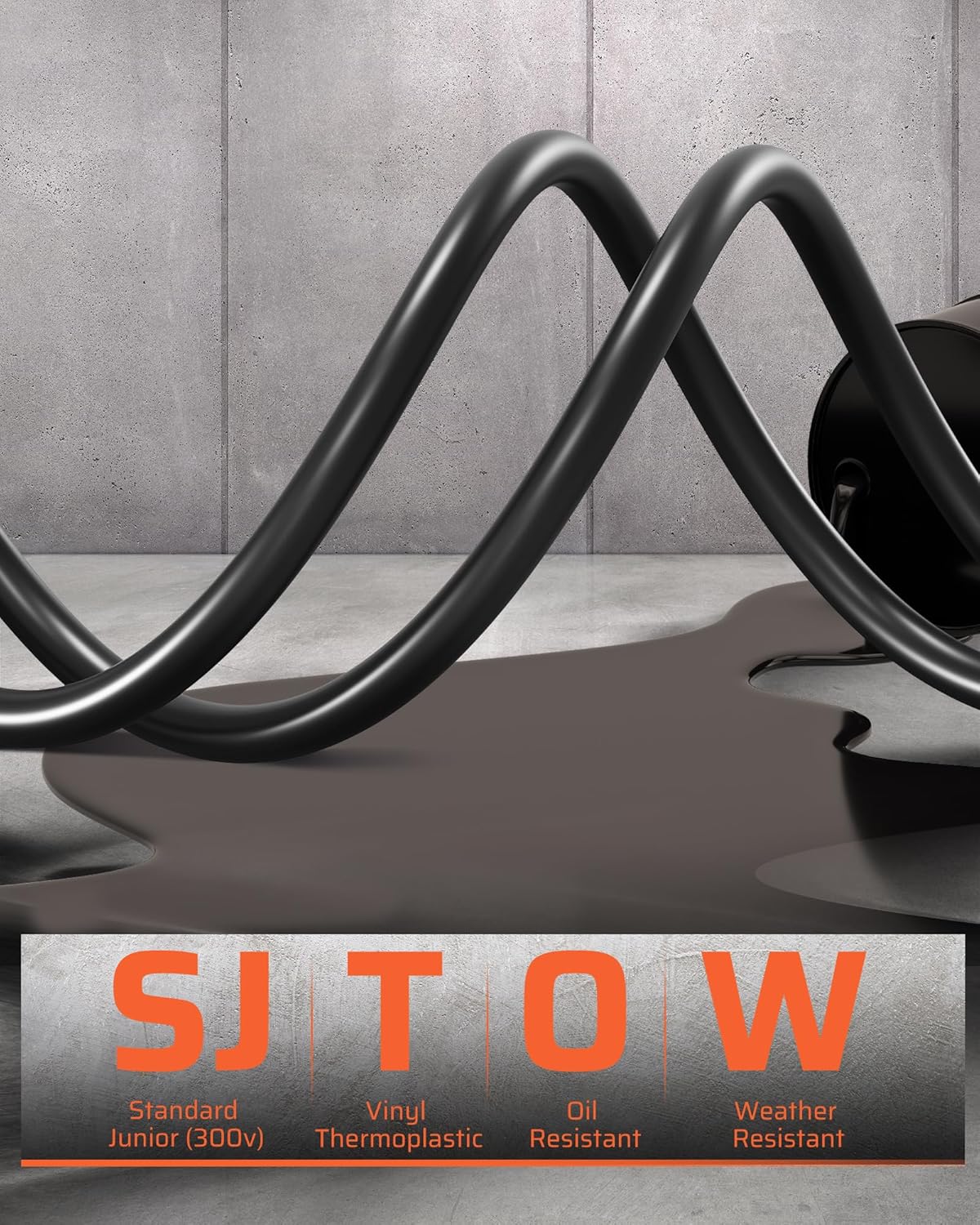 - 【 14AWG/3C SJTOW 75FT Cord 】 With 14/3C gauge, the SJTOW cord is weather-resistant and flexible in low temperature, resistant to UV ray, water, oil and acid in a typical garage; for indoor or dry-location use; 75ft extension cord meets the needs of large-space use; 4.5ft lead-in cord covers most of the distance from the socket within installation area