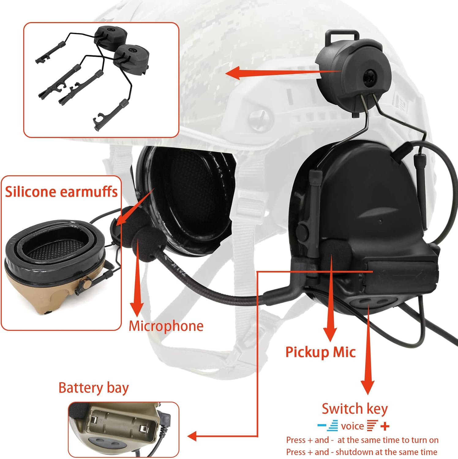 COMTA 2 Helmet-Type Tactical Headset with U94 PTT 2pin,Noise Canceling Headphones,for Airsoft Hunting Shooting