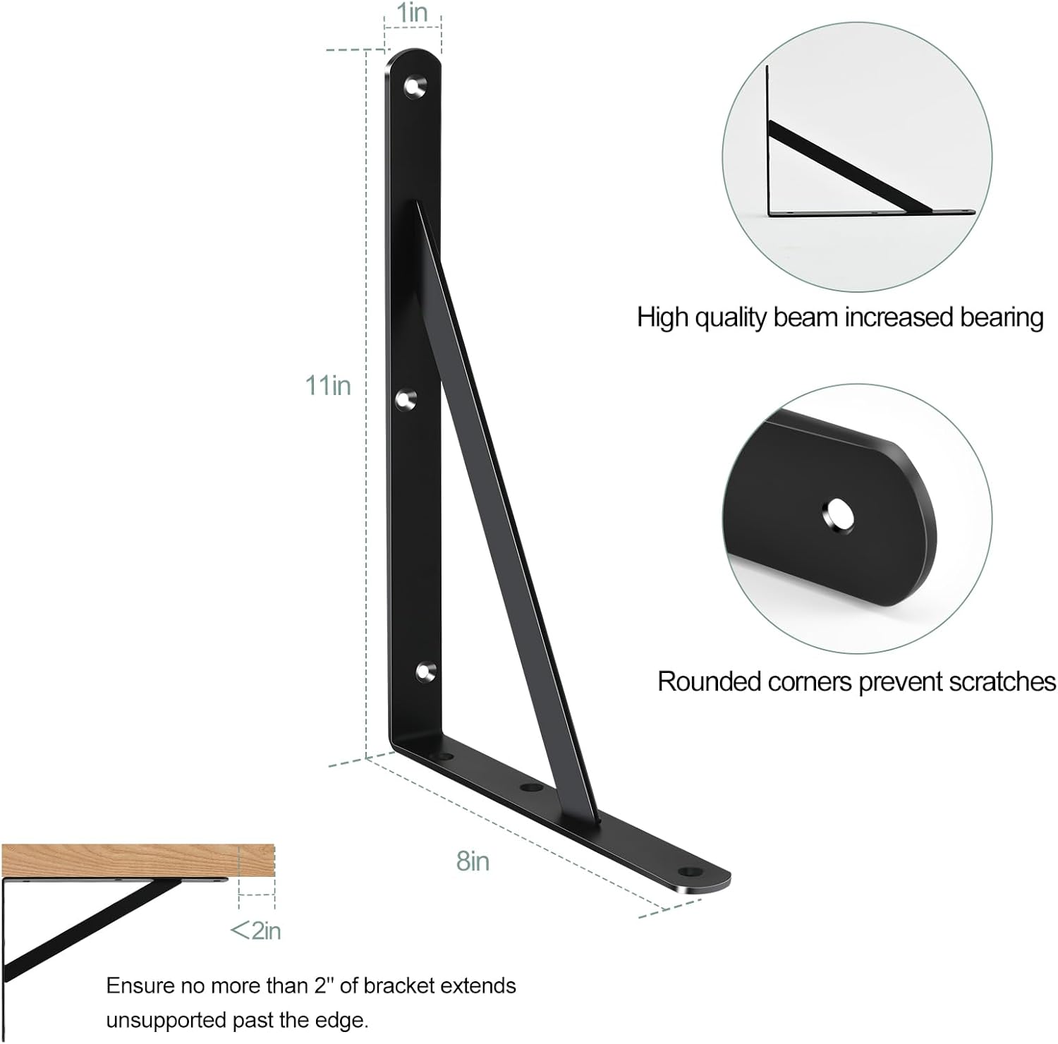 12 Pack L11 x H 8" Black Heavy Duty Shelf Brackets with Screws Metal Shelf Brackets Shelf Support Angle Brackets for Shelves L Brackets Heavy Duty Floating Shelf Brackets
