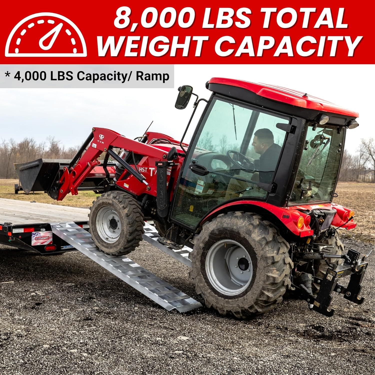 - Superior Load Capacity: Our aluminum loading ramps boast a remarkable weight capacity, ensuring they can handle the heaviest of loads. These trailer ramps heavy duty are designed for both efficiency and reliability when loading utility trailers and trucks.