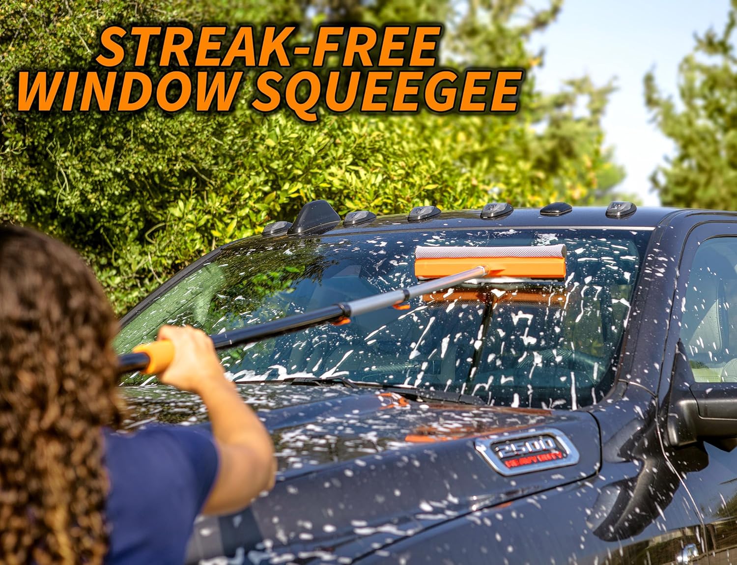 - FOR ANY AND ALL VEHICLES - Whether you need to clean your RV, your car or pickup truck, this multi-use car wash kit is designed to easily clean all kinds of vehicles, even in odd angles and hard-to-reach places. This set of car wash tools has everything you need to treat your vehicle to the highest level of care: a streak-free windshield washer brush, a car wash brush, and a microfiber car washing mop to clean any surface without a scratch.