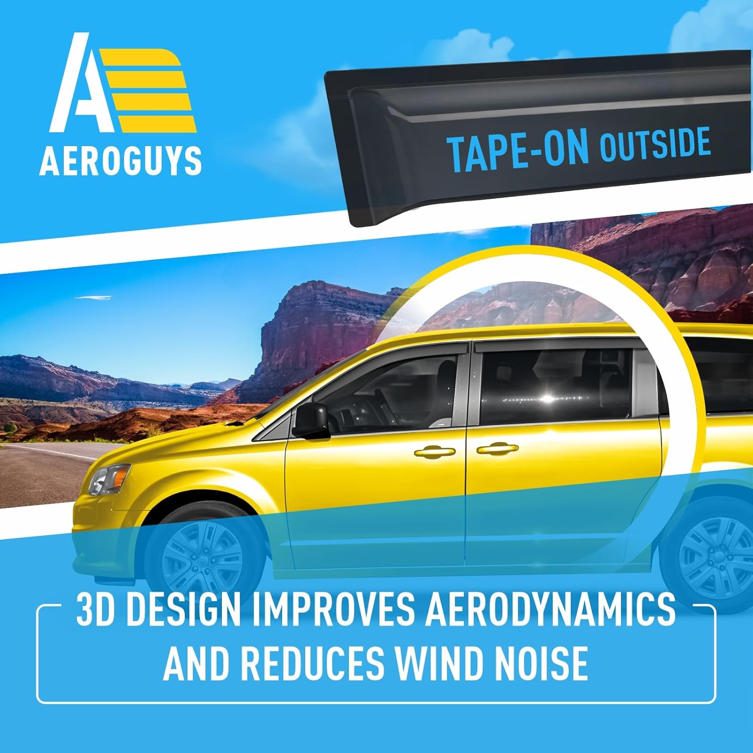Extra Durable Window Deflectors Tape-On Window Visors Rain Guards Fit for Dodge Grand Caravan 2008-2020, Sun Visors, Wind Vent for Shades, Exterior Car Accessories - 4pcs. AG0027