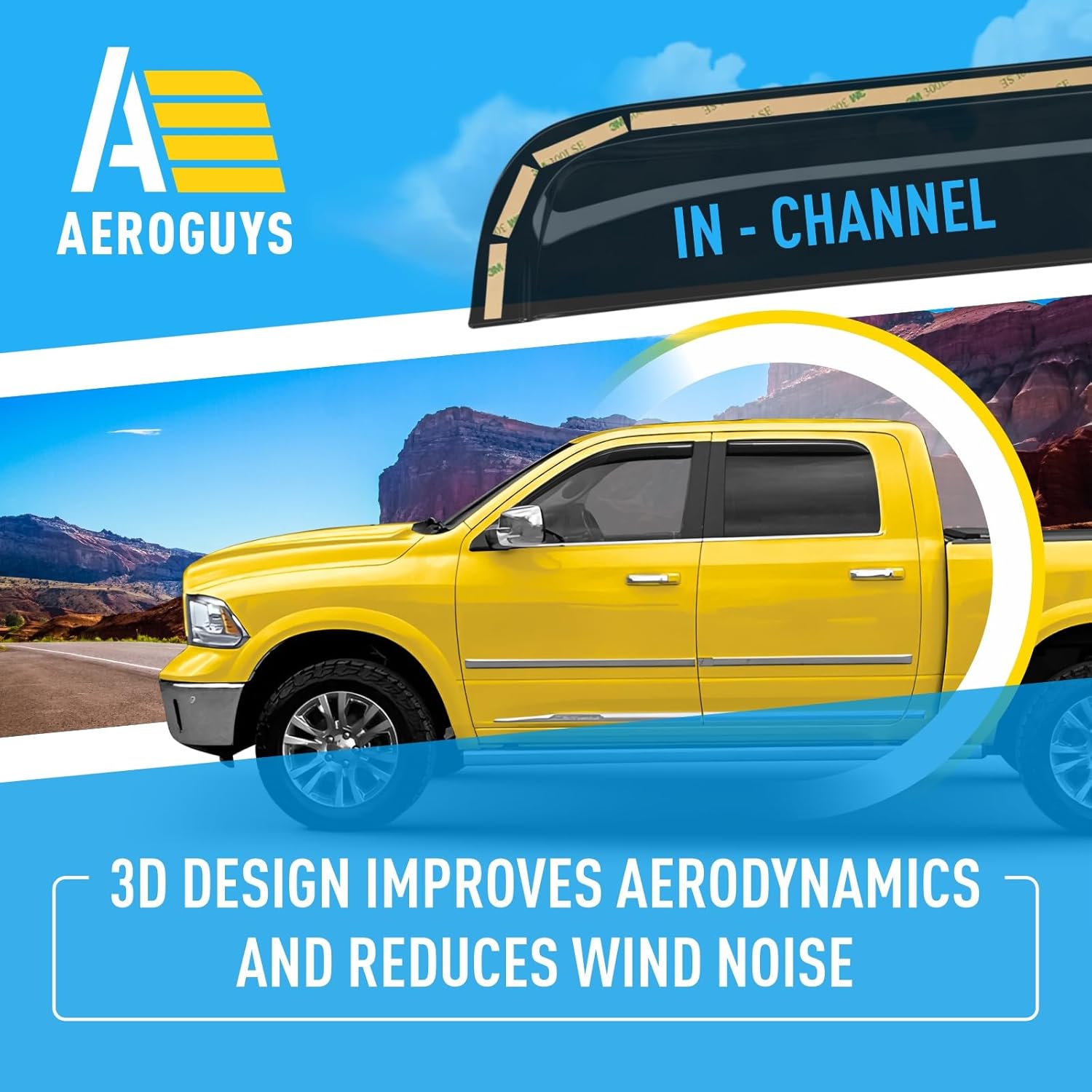 - No Tools Needed, Quick and Easy Assembly – These rain guards are very easy to fit. IN-CHANNEL INSTALLATION provides perfect fit for your truck. Just slip it onto your truck’s window and your job is done within minutes. There is no drilling or no tools required. Be sure that AEROGUYS window deflectors are water resistant, sun protective and will not bend, break or crack regardless of the weather conditions.