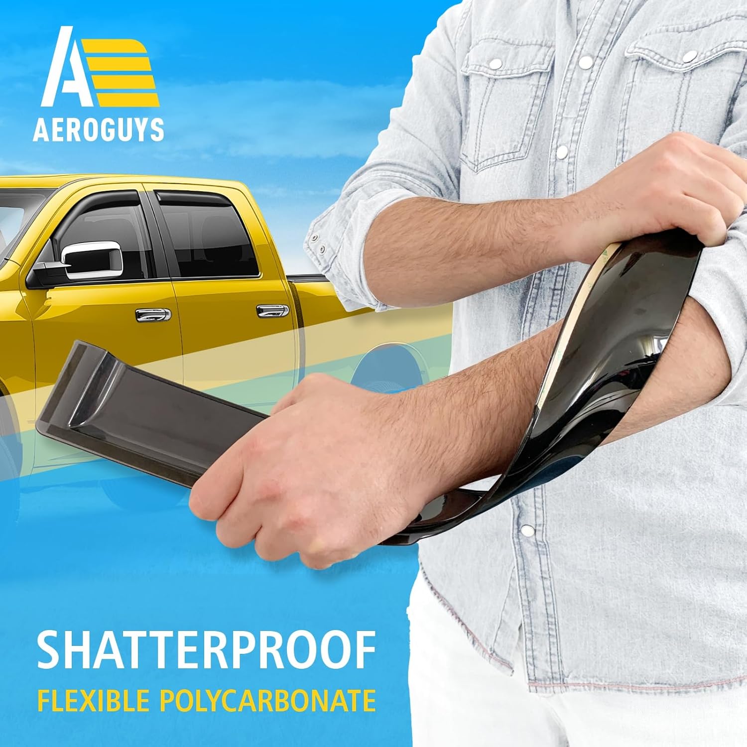 - Incredibly Durable AEROGUYS Auto Window Deflectors – They are made with strong and tough polycarbonate which is clear and scratch-resistant. They also provide UV protection making your ride more comfortable under all weather conditions.