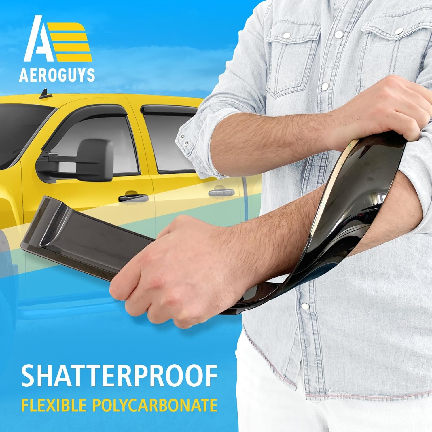 - Incredibly Durable AEROGUYS Auto Window Deflectors – They are made with strong and tough polycarbonate which is clear and scratch-resistant. They also provide UV protection making your ride more comfortable under all weather conditions.