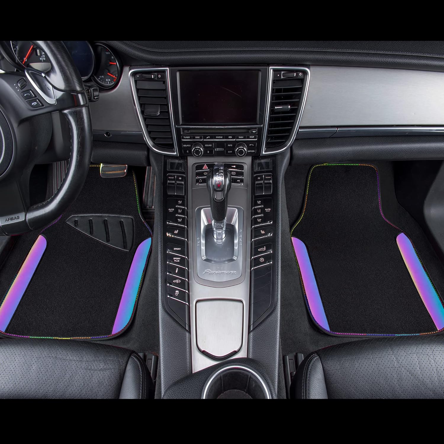 CAR PASS Chameleon Iridescent Reflective PU Leather&Waterproof Universal Carpet car Floor mats,Fit for 95% Suvs,Sedans,Vans,Trucks&Car Mat for Women(Reflective Color Change)